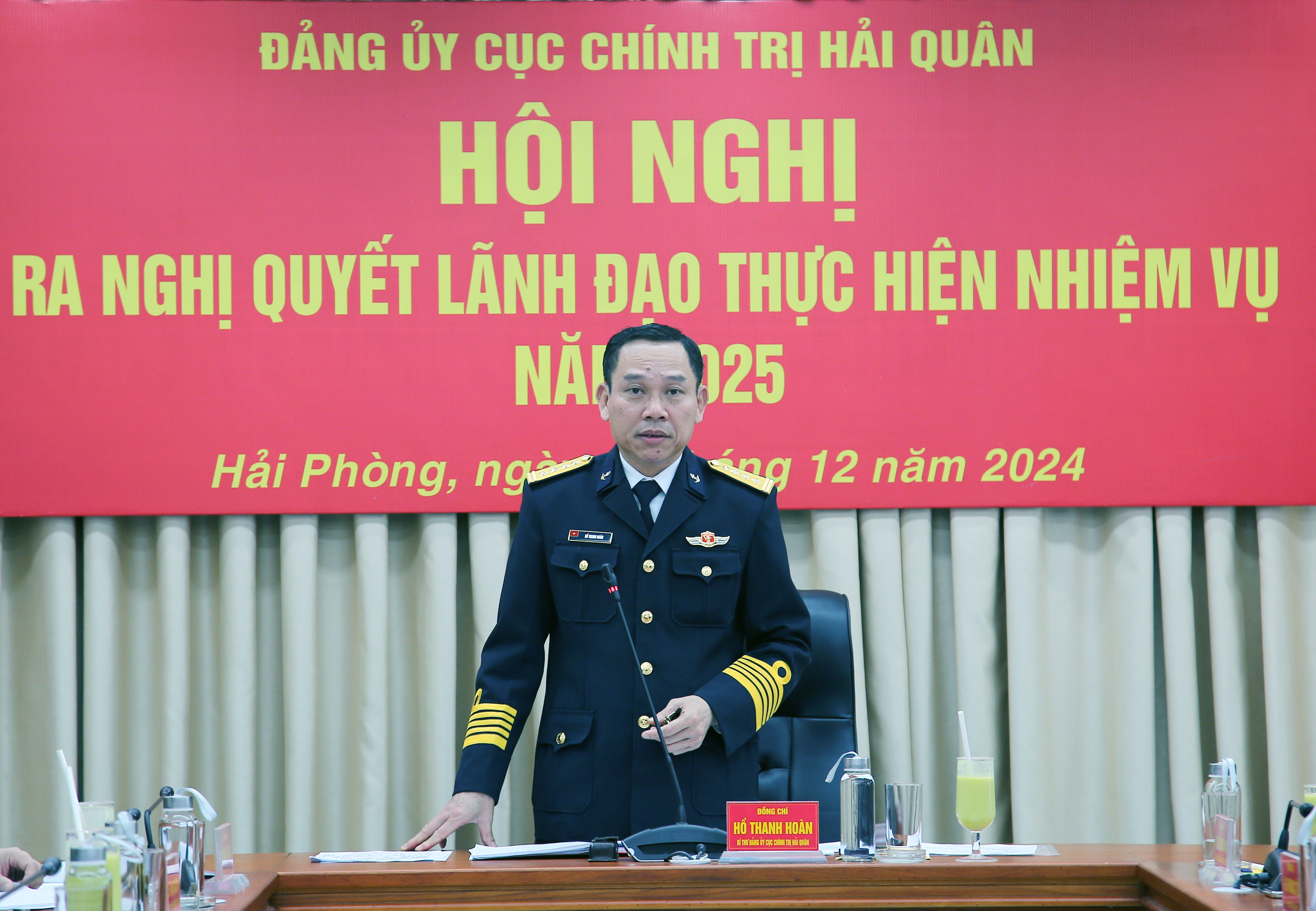 Sáng 7/12, Đảng ủy Cục Chính trị Hải quân tổ chức Hội nghị ra nghị quyết lãnh đạo thực hiện nhiệm vụ năm 2025. Đại tá Hồ Thanh Hoàn, Phó Chủ nhiệm Chính trị Hải quân, Bí thư Đảng uỷ Cục Chính trị chủ trì.