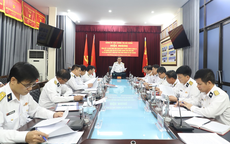 Ngày 10/10, tại Hải Phòng, Đảng ủy Cục Chính trị Hải quân tổ chức Hội nghị tổng kết 10 năm thực hiện Nghị quyết Trung ương 8 (TW8) Khóa XI về Chiến lược bảo vệ Tổ quốc trong tình hình mới. Dự hội nghị có Chuẩn Đô đốc Đoàn Văn Chiều, Chủ nhiệm Chính trị Hải quân. Chuẩn Đô đốc Phạm Văn Luyện, Phó Chủ nhiệm Chính trị Hải quân, Bí thư Đảng ủy Cục Chính trị chủ trì. Cùng dự có các đồng chí trong Đảng ủy Cục và thủ trưởng các cơ quan, đơn vị trực thuộc Cục.