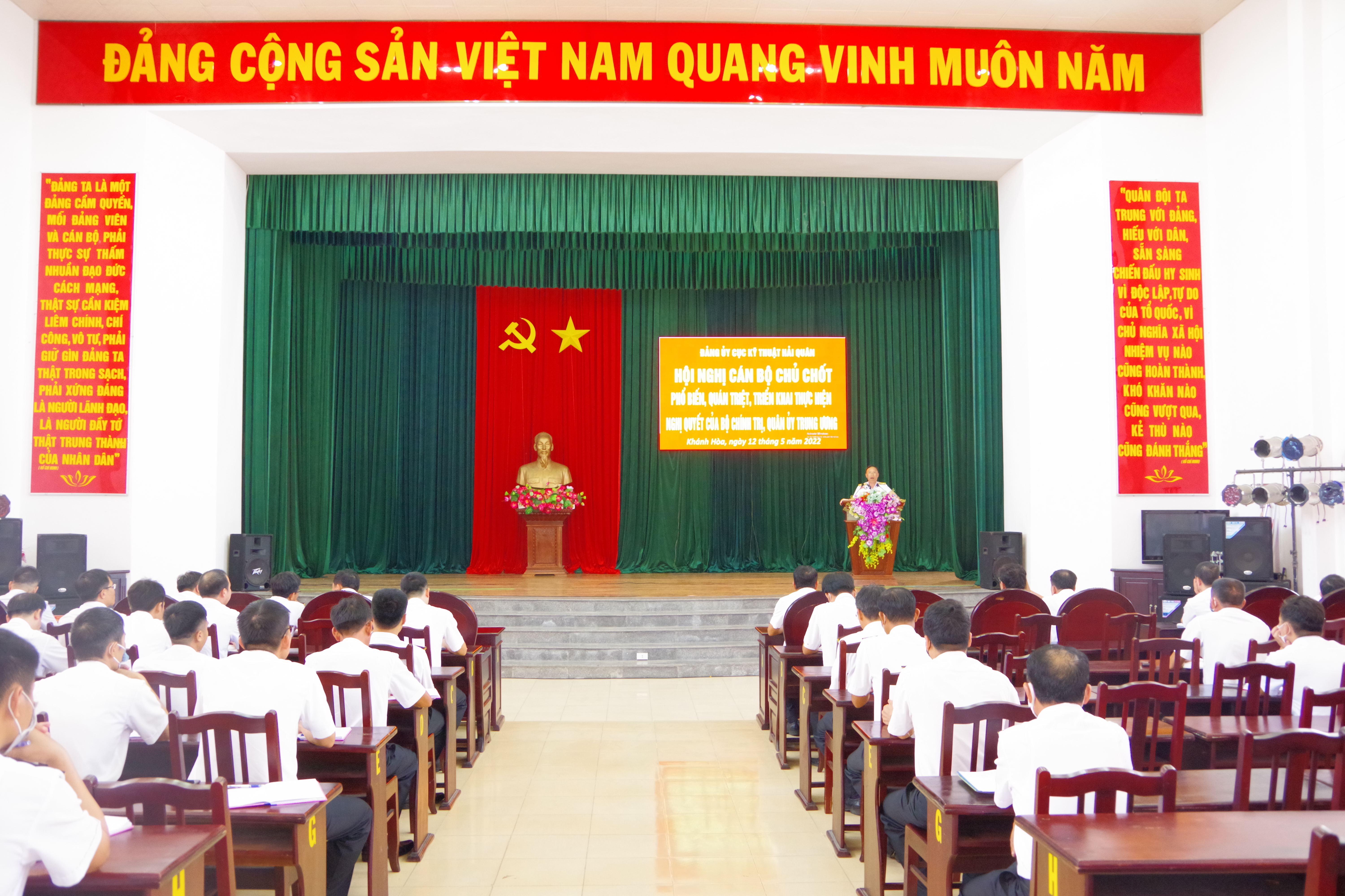 Tại hội nghị, các đại biểu nghe Đại tá Ngô Văn Thành phổ biến, quán triệt nội dung cơ bản của Nghị quyết số 05 của Bộ Chính trị về tổ chức Quân đội nhân dân Việt Nam giai đoạn 2021-2030 và những năm tiếp theo; Nghị quyết số 230 của Quân ủy Trung ương lãnh đạo thực hiện tổ chức Quân đội nhân dân Việt Nam giai đoạn 2021-2030 và những năm tiếp theo; Kế hoạch của Bộ Quốc phòng thực hiện Nghị quyết số 230.