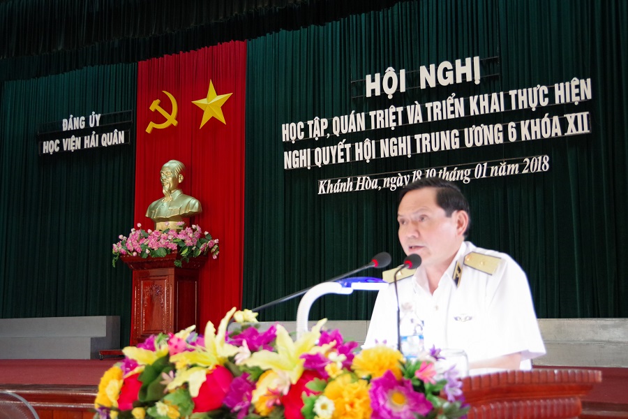 Chiều 18-1, tại Khánh Hòa, Đảng ủy Học viện Hải quân đã tổ chức Hội nghị học tập, quán triệt, triển khai thực hiện Nghị quyết Hội nghị Trung ương 6, Khóa XII. Chuẩn Đô đốc Phạm Văn Luyện, Bí thư Đảng uỷ, Chính uỷ Học viện chủ trì và trực tiếp truyền đạt Chuyên đề 1. Tham dự hội nghị có các đồng chí trong Đảng uỷ, Ban Giám đốc Học viện và toàn thể cán bộ, đảng viên toàn Học viện.