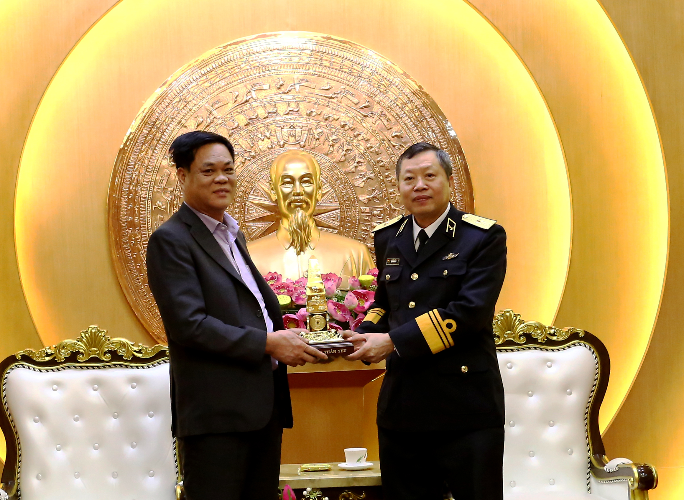 Đoàn công tác Đảng ủy Khối cơ quan Trung ương tặng Bộ Tư lệnh Hải quân quà lưu niệm