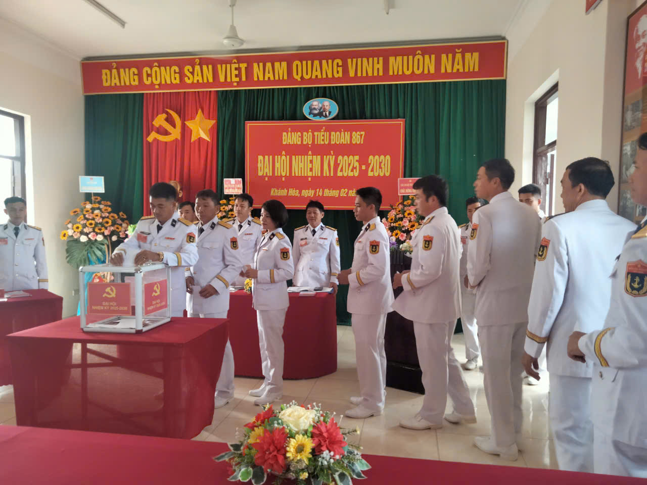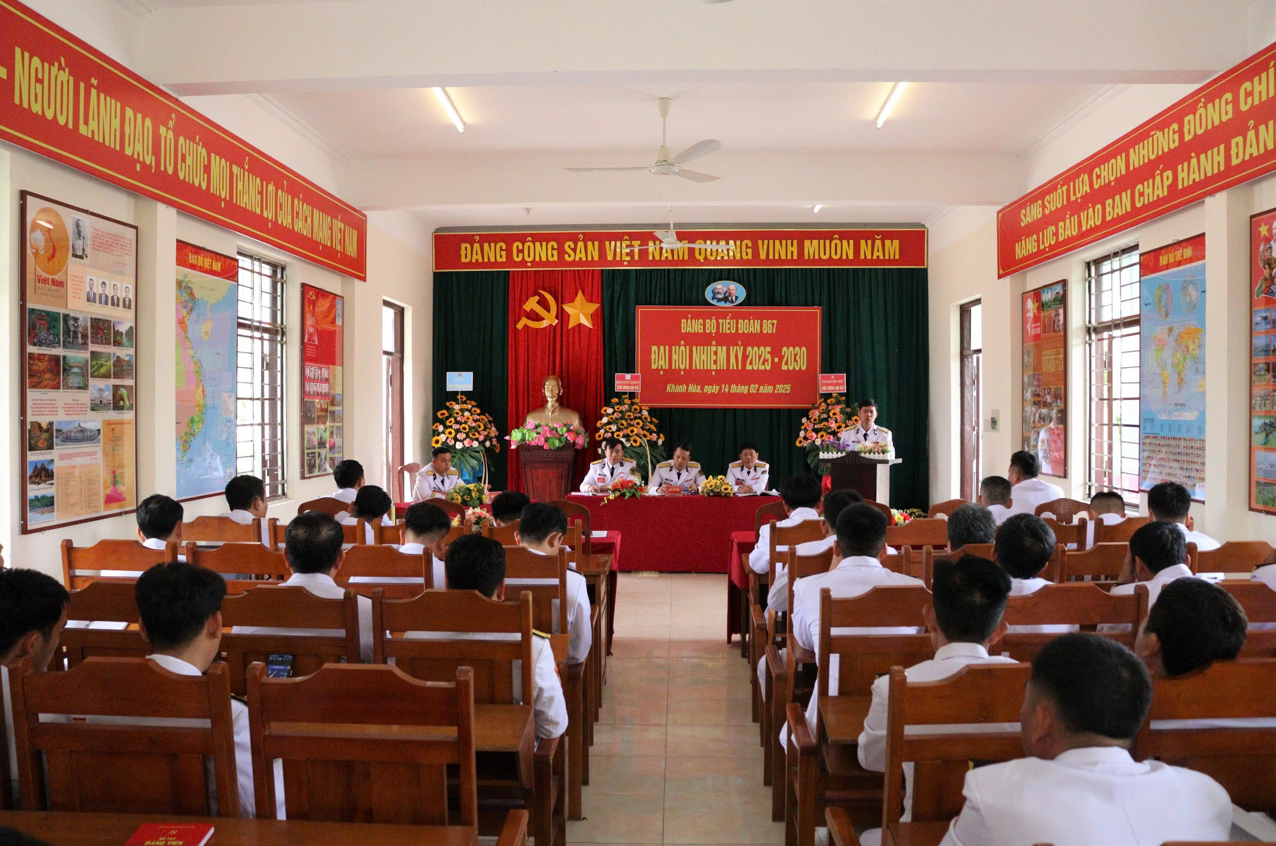 Sáng 14/2, tại xã Cam Thành Bắc, huyện Cam Lâm, tỉnh Khánh Hòa, Đảng bộ bộ phận Tiểu đoàn 867, thuộc Đảng bộ Lữ đoàn 101, Vùng 4 Hải quân tổ chức Đại hội nhiệm kỳ 2025-2030. Đây là Đảng bộ được Đảng ủy Lữ đoàn chọn làm trước để rút kinh nghiệm trong toàn Đảng bộ. Đại tá Phạm Duy Hướng, Bí thư Đảng ủy, Chính ủy Lữ đoàn dự và chỉ đạo đại hội.