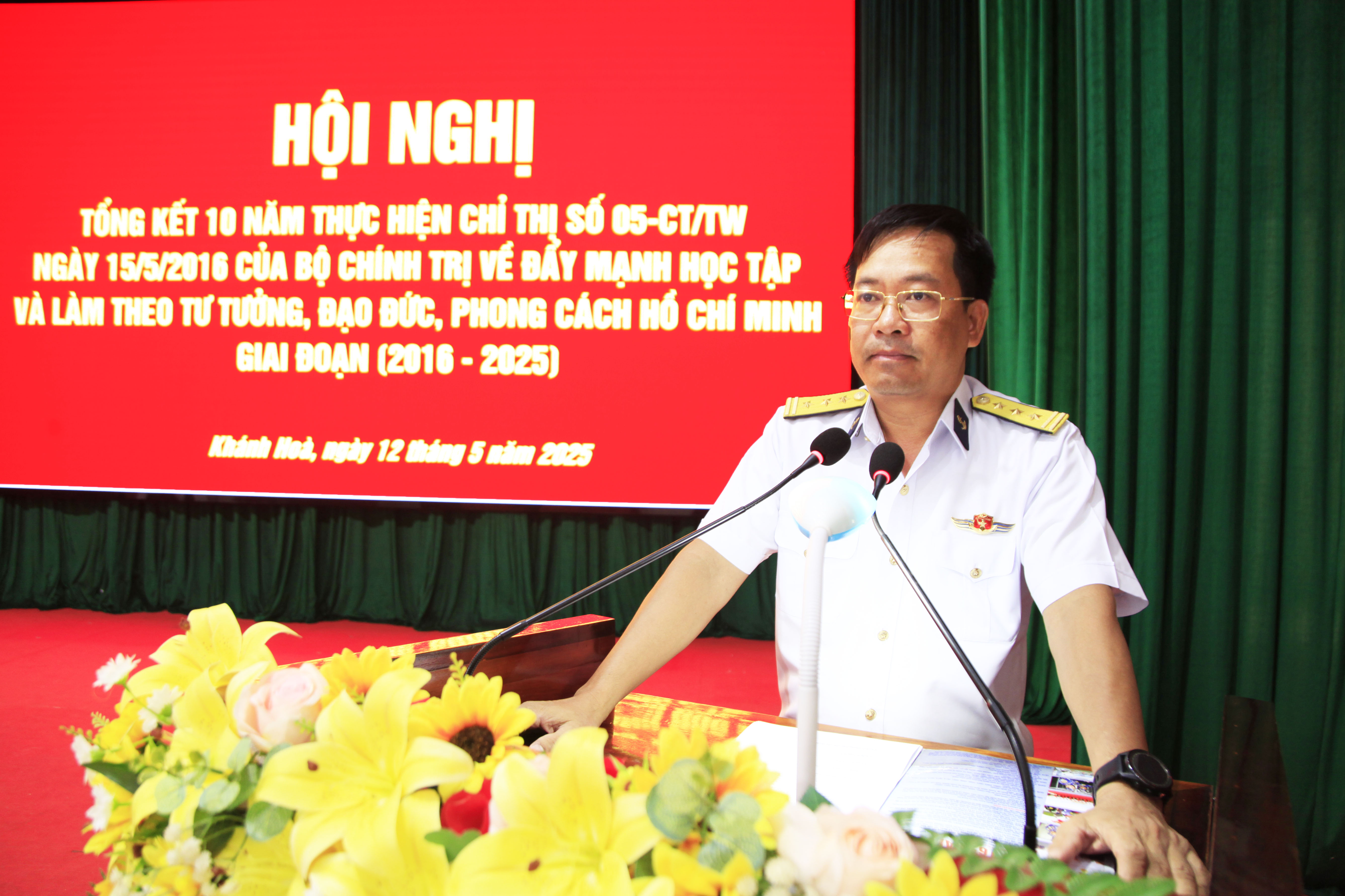 Chiều 12/5, tại thành phố Cam Ranh, tỉnh Khánh Hoà, Đảng ủy Lữ đoàn 162, Vùng 4 Hải quân tổ chức Hội nghị tổng kết 10 năm thực hiện Chỉ thị số 05-CT/TW của Bộ Chính trị về đẩy mạnh học tập và làm theo tư tưởng, đạo đức, phong cách Hồ Chí Minh. Thượng tá Mai Văn Doanh, Bí thư Đảng ủy, Chính ủy Lữ đoàn chủ trì.