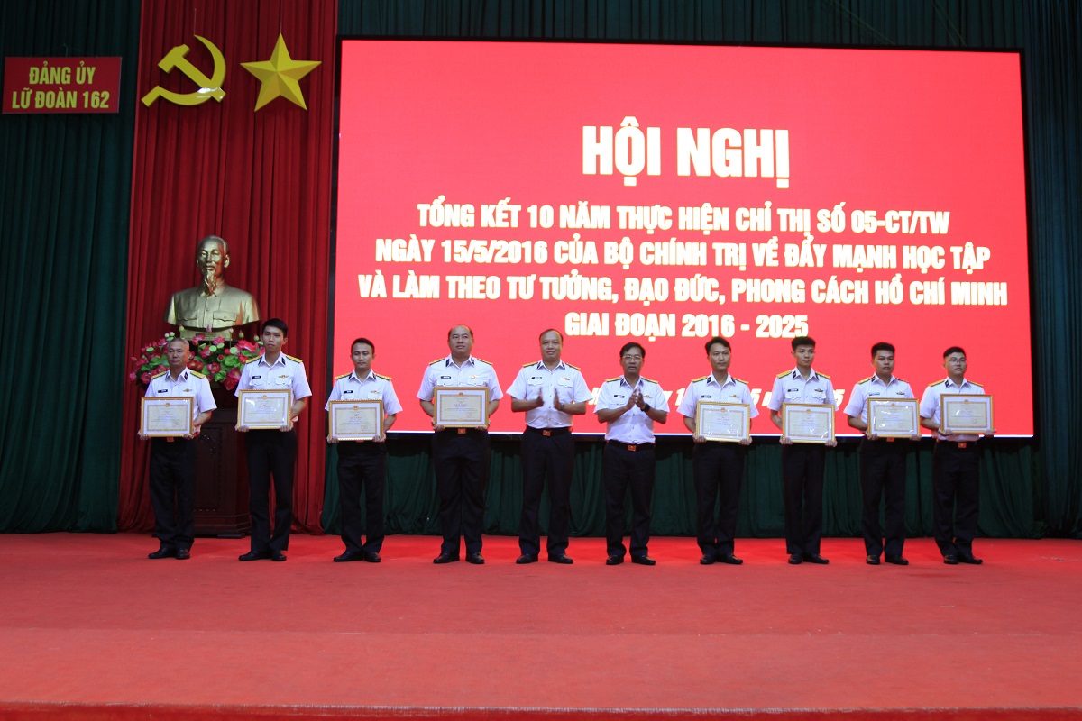 Dịp này, Đảng ủy, chỉ huy Lữ đoàn 162 đã trao tặng Giấy khen cho 5 tập thể và 4 cá nhân vì đã có thành tích xuất sắc trong học tập và làm theo tư tưởng, đạo đức, phong cách Hồ Chí Minh.