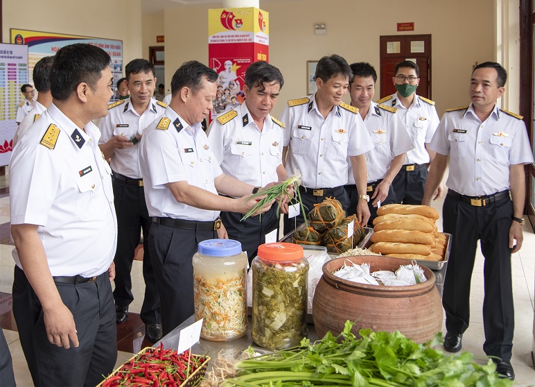 Các đại biểu tham quan trưng bày sản phẩm tăng gia của Lữ đoàn