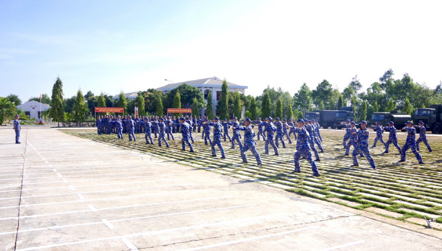 Cán bộ, chiến sĩ đồng diễn võ thể dục trong Lễ ra quân huấn luyện năm 2025