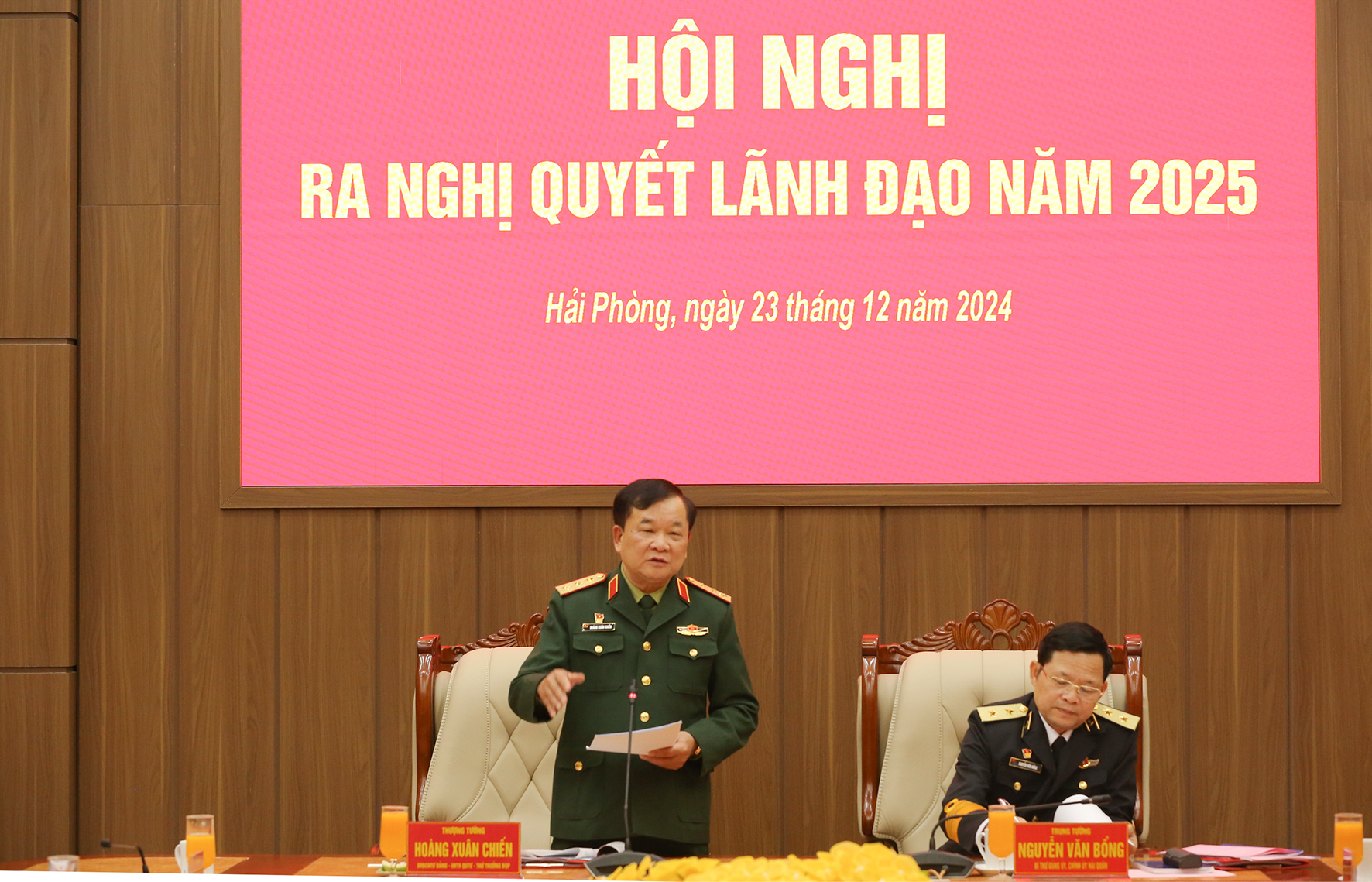Sáng 23/12, tại TP. Hải Phòng, Đảng ủy Quân chủng Hải quân tổ chức Hội nghị ra Nghị quyết lãnh đạo năm 2025. Thượng tướng Hoàng Xuân Chiến, Ủy viên Trung ương Đảng, Ủy viên Thường vụ Quân ủy Trung ương, Thứ trưởng Bộ Quốc phòng dự, chỉ đạo hội nghị.