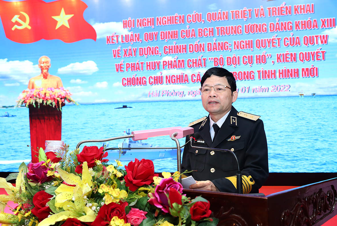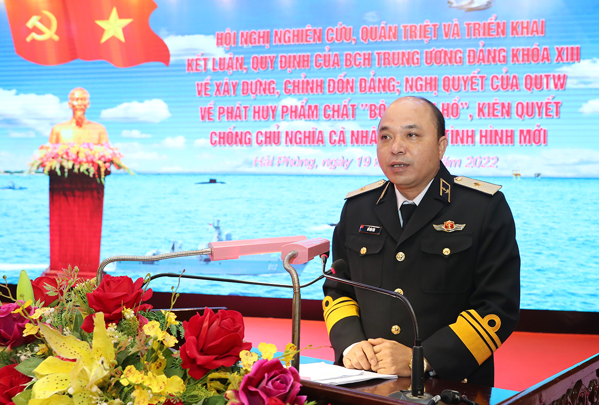 Tiếp đó, Chuẩn Đô đốc Đỗ Văn Yên, Phó Chính ủy Hải quân giới thiệu Nghị quyết số 847-NQ/QUTW ngày 28/12/2021 của Quân ủy Trung ương về phát huy phẩm chất “Bộ đội Cụ Hồ”, kiên quyết chống chủ nghĩa cá nhân trong tình hình mới. Chuẩn Đô đốc Phạm Văn Luyện, Phó Chủ nhiệm Chính trị Hải quân hướng dẫn học tập, quán triệt, triển khai thực hiện Kết luận, Quy định của Hội nghị Trung ương 4 Khóa XIII, Nghị quyết số 847-NQ-QUTW.