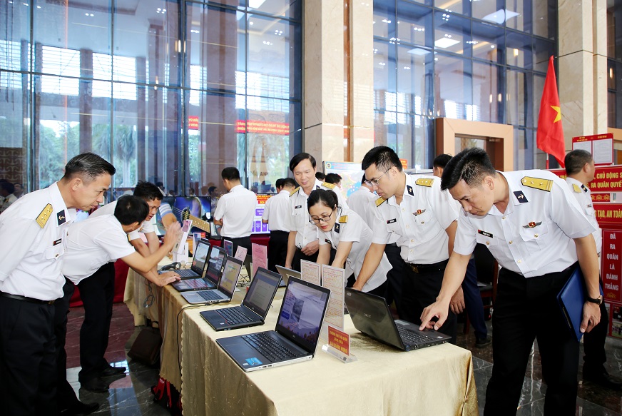 Các đại biểu tham quan sản phẩm phục vụ công tác giáo dục chính trị