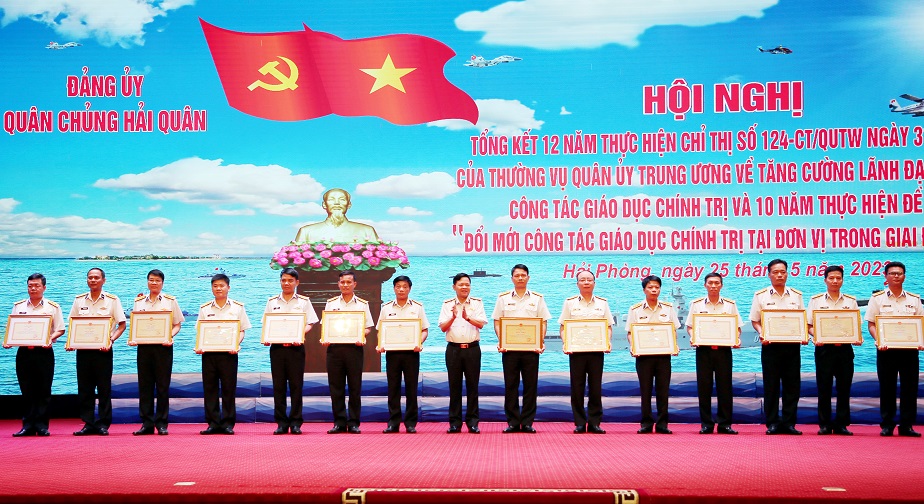 Dịp này, Đảng ủy Quân chủng Hải quân đã đề nghị Bộ Quốc phòng và Tổng cục Chính trị tặng Bằng khen 6 tập thể, 7 cá nhân; trao thưởng 22 tập thể, 21 cá nhân có thành tích xuất sắc trong thực hiện Chỉ thị 124 và Đề án.