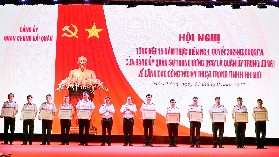 Sáng 9/8, tại Hải Phòng, Đảng ủy Quân chủng Hải quân tổ chức Hội nghị tổng kết 15 năm thực hiện Nghị quyết 382-NQ/ĐUQSTW của Đảng ủy Quân sự Trung ương (nay là Quân ủy Trung ương) về lãnh đạo công tác kỹ thuật trong tình hình mới. Dự hội nghị có Chuẩn Đô đốc Trần Thanh nghiêm, Ủy viên Trung ương Đảng, Tư lệnh Hải quân; Thiếu tướng Hoàng Minh Định, Phó Chủ nhiệm Tổng cục Kỹ thuật. Trung tướng Nguyễn Văn Bổng, Bí thư Đảng ủy, Chính ủy Hải quân chủ trì.