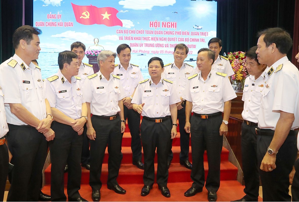 Tại hội nghị, các đại biểu đã nghe đồng chí Bí thư Đảng ủy, Chính ủy Hải quân phổ biến, quán triệt nội dung cơ bản của Nghị quyết số 05-NQ/TW, ngày 17/1/2022 của Bộ Chính trị về tổ chức Quân đội nhân dân Việt Nam giai đoạn 2021-2030 và những năm tiếp theo; Nghị quyết số 230-NQ/QUTW, ngày 2/4/2022 của Quân ủy Trung ương lãnh đạo thực hiện tổ chức Quân đội nhân dân Việt Nam giai đoạn 2021-2030 và những năm tiếp theo; Kế hoạch của Bộ Quốc phòng thực hiện Nghị quyết số 230.