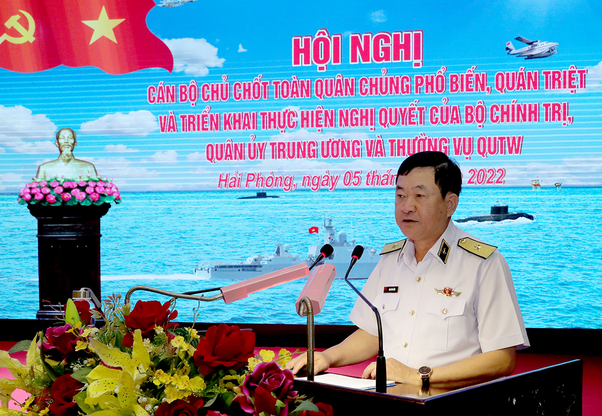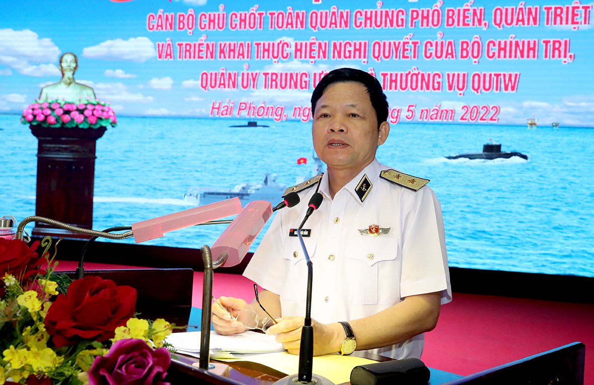 Tại hội nghị, Chuẩn Đô đốc Đoàn Văn Chiều, Ủy viên Thường vụ Đảng ủy Quân chủng, Chủ nhiệm Chính trị Hải quân đã hướng dẫn các cơ quan, đơn vị tổ chức phổ biến, quán triệt và triển khai thực hiện nghị quyết của Bộ Chính trị, Quân ủy Trung ương, kế hoạch của Bộ Quốc phòng theo phân cấp bảo đảm chặt chẽ, hiệu quả, thiết thực.
