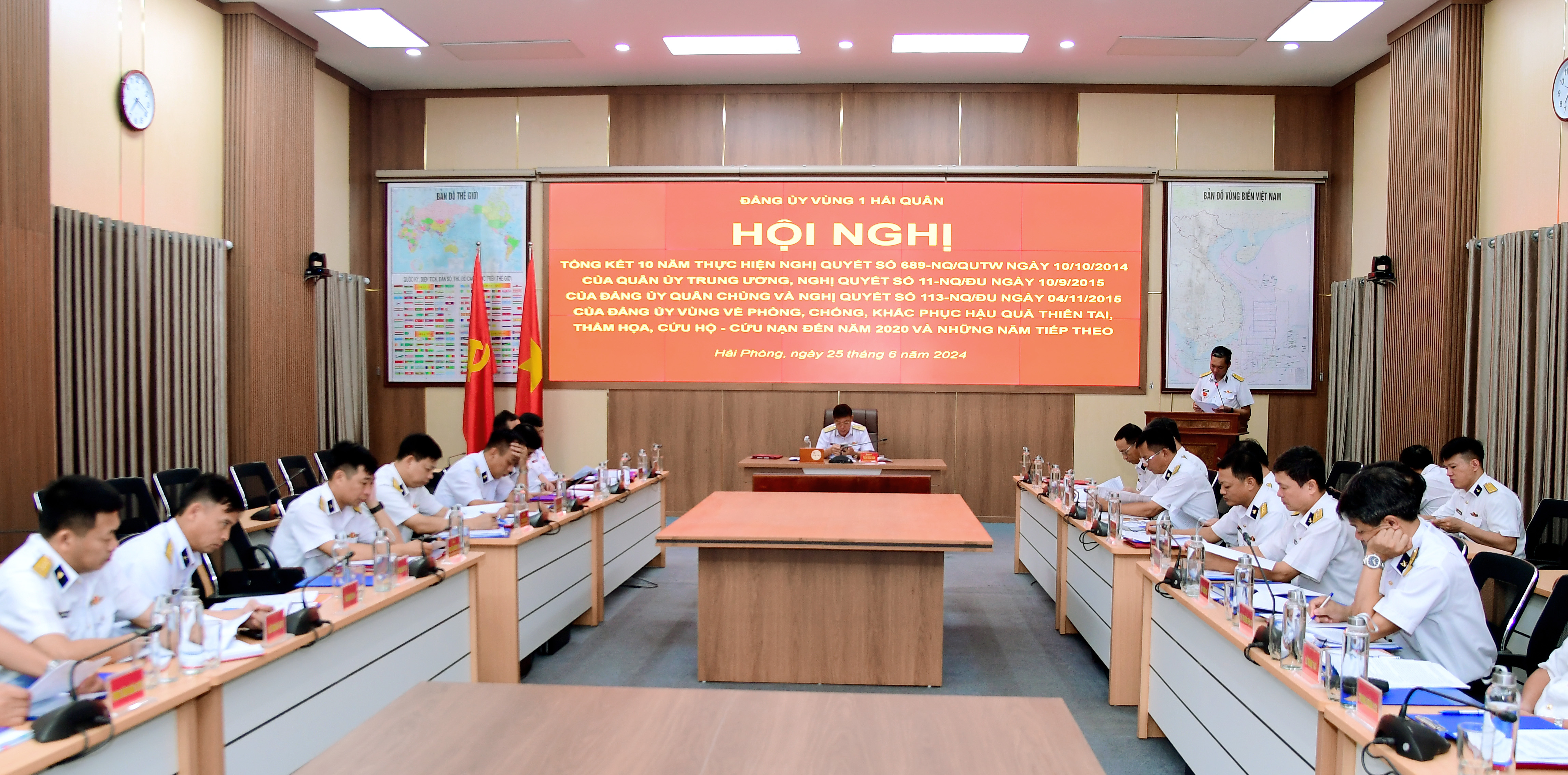 Sáng 25/6, tại Hải Phòng, Đảng ủy Vùng 1 Hải quân tổ chức Hội nghị tổng kết 10 năm thực hiện Nghị quyết số 689 của Quân ủy Trung ương, Nghị quyết số 11 của Đảng ủy Quân chủng Hải quân, Nghị quyết số 113 của Đảng ủy Vùng 1 về lãnh đạo công tác phòng, chống, khắc phục hậu quả thiên tai, thảm họa, cứu hộ - cứu nạn đến năm 2020 và những năm tiếp theo.