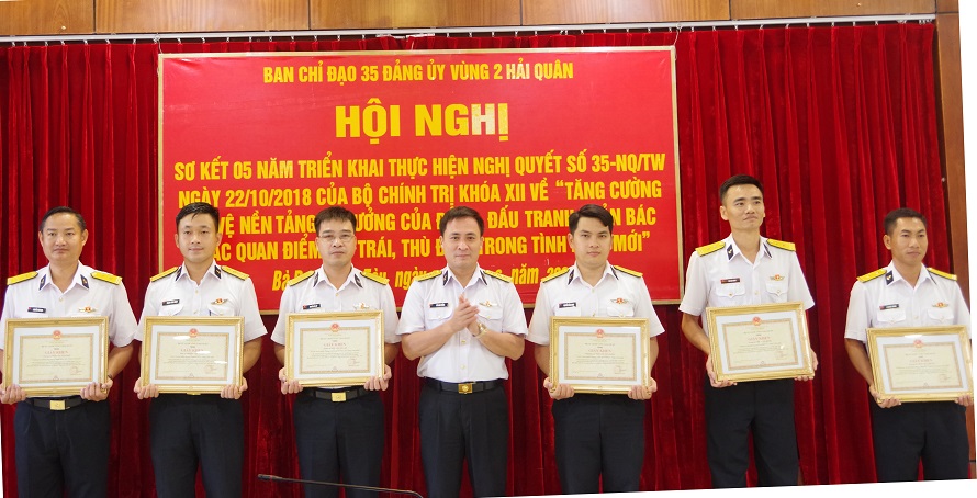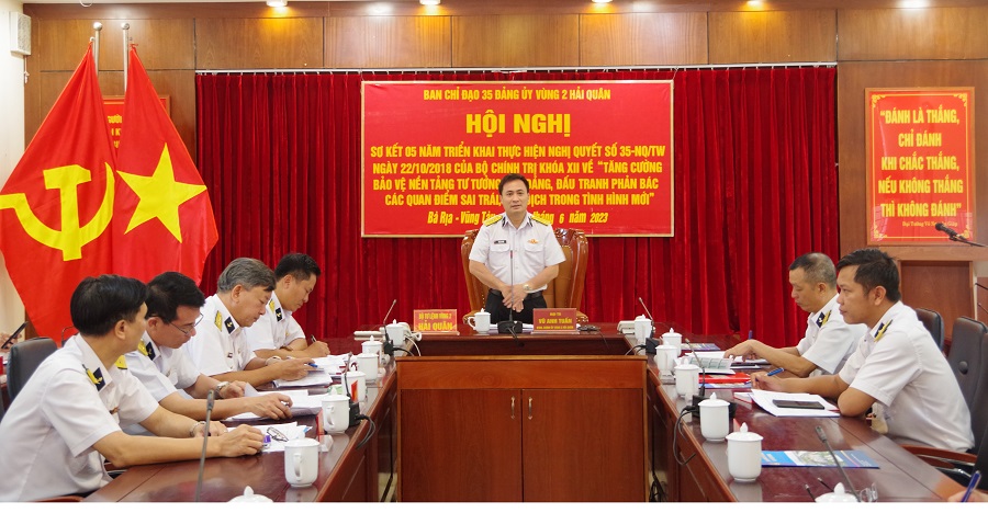 Sáng 2/6, tại thành phố Vũng Tàu, tỉnh Bà Rịa – Vũng Tàu, Ban chỉ đạo 35 Đảng ủy Vùng 2 Hải quân tổ chức Hội sơ kết 5 năm thực hiện Nghị quyết số 35-NQ/TW của Bộ Chính trị Khoá XII về “Tăng cường bảo vệ nền tảng tư tưởng của Đảng, đấu tranh phản bác các quan điểm sai trái, thù địch trong tình hình mới” (Nghị quyết 35 của Bộ Chính trị). Đại tá Vũ Anh Tuấn, Bí thư Đảng ủy, Chính ủy, Trưởng ban Chỉ đạo 35 Đảng ủy Vùng 2 chủ trì.