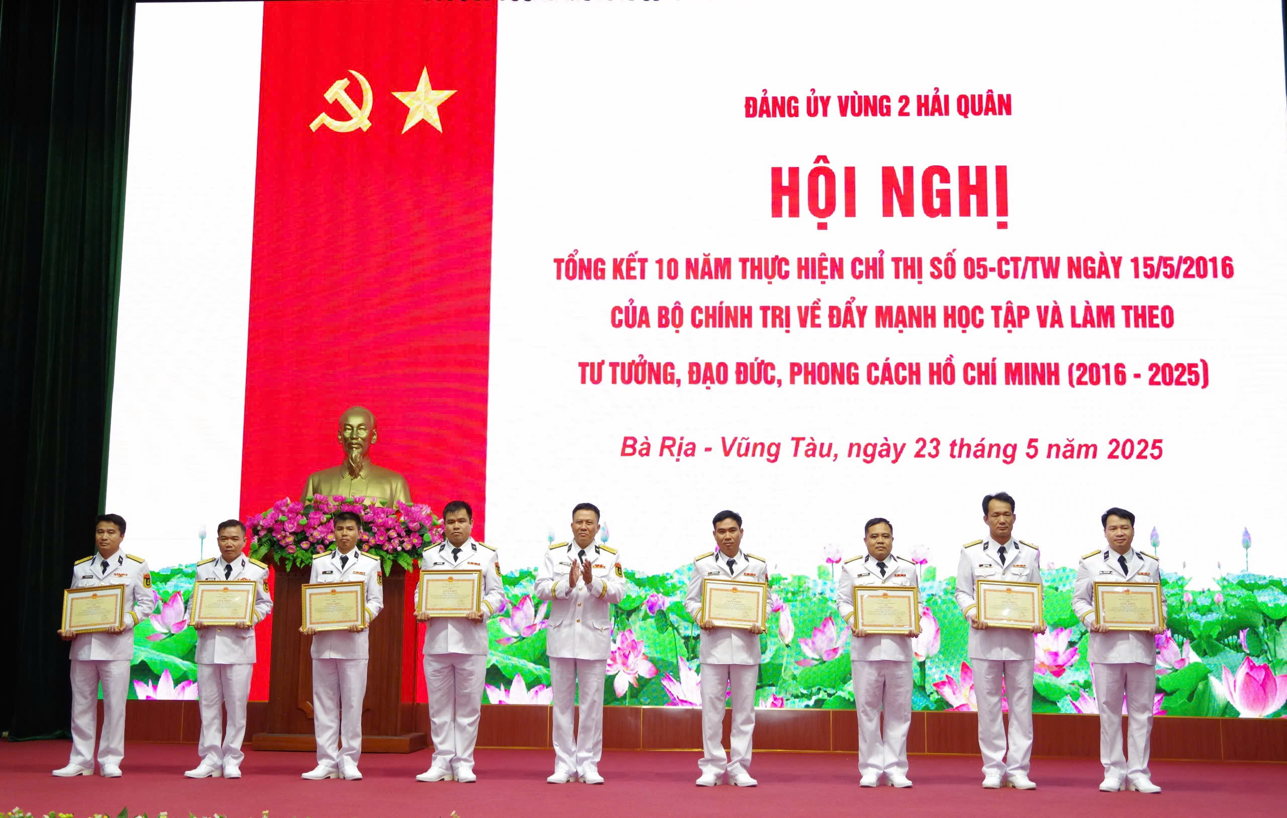 Chiều 23/5, tại TP. Vũng Tàu (tỉnh Bà Rịa – Vũng Tàu), Đảng ủy Vùng 2 Hải quân tổ chức Hội nghị tổng kết 10 năm thực hiện Chỉ thị số 05-CT/TW của Bộ Chính trị về “Đẩy mạnh học tập và làm theo tư tưởng, đạo đức, phong cách Hồ Chí Minh”, giai đoạn 2016–2025. Đại tá Trần Mạnh Chiến, Bí thư Đảng ủy, Chính ủy Vùng dự và chủ trì hội nghị.