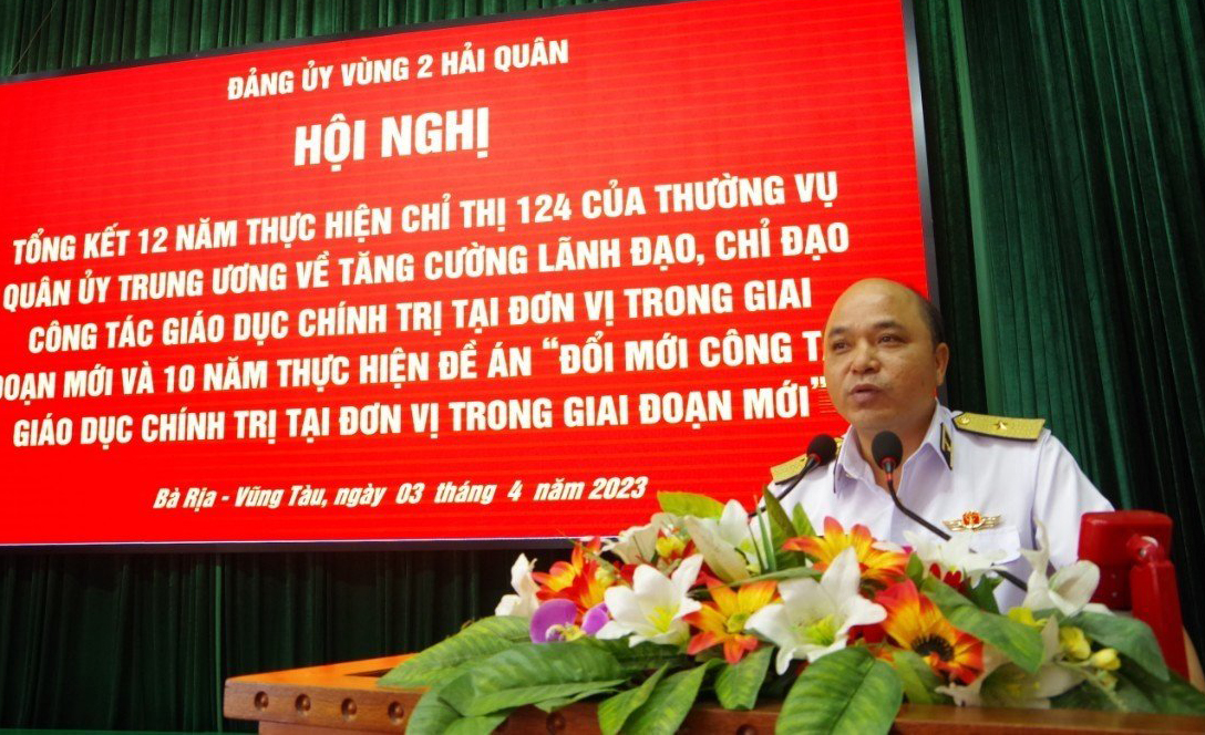 Ngày 3/4, tại thành phố Vũng Tàu, tỉnh Bà Rịa-Vũng Tàu, Đảng ủy Vùng 2 Hải quân tổ chức Hội tổng kết 12 năm thực hiện Chỉ thị số 124-CT/QUTW ngày 31/3/2011 của Thường vụ Quân ủy Trung ương về tăng cường lãnh đạo, chỉ đạo công tác giáo dục chính trị (GDCT) tại đơn vị trong giai đoạn mới, 10 năm thực hiện Đề án “Đổi mới công tác GDCT tại đơn vị trong giai đoạn mới”.