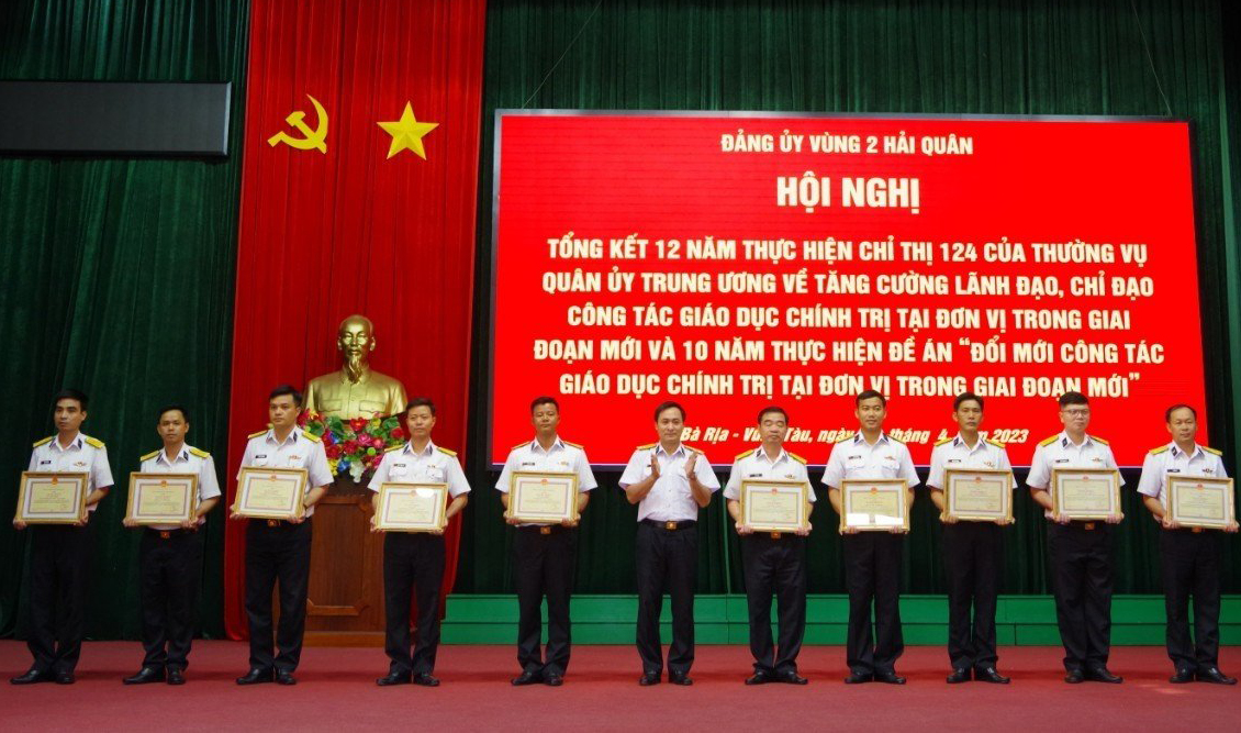 Tại hội nghị, Đảng ủy Vùng 2 đã trao thưởng 5 tập thể và 5 cá nhân đạt thành tích xuất sắc trong thực hiện Chỉ thị 124 và Đề án "Đổi mới công tác GDCT tại đơn vị trong giai đoạn mới.