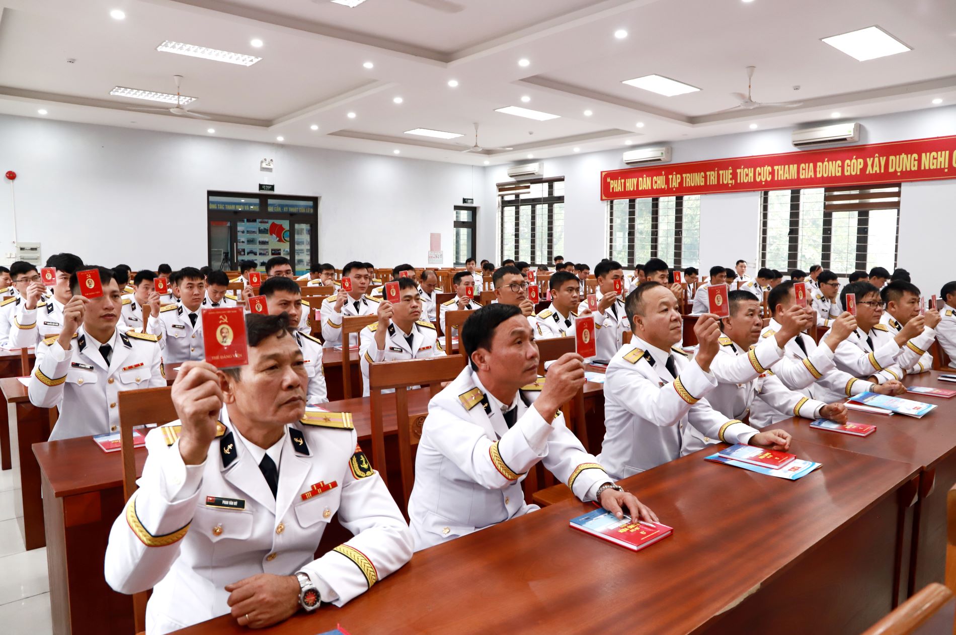 Chủ trì rút kinh nghiệm đại hội, Đại tá Phạm Đình Thành biểu dương, đánh giá cao công tác chuẩn bị, điều hành và kết quả Đại hội Chi bộ Tàu 863.