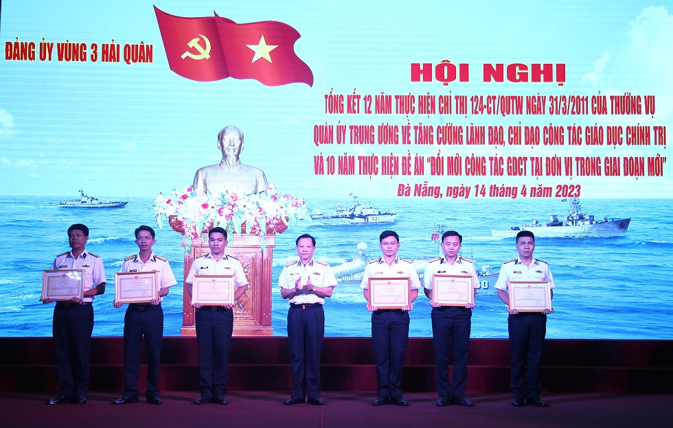Ngày 14/4, tại thành phố Đà Nẵng, Đảng ủy Vùng 3 Hải quân tổ chức Hội nghị tổng kết 12 năm thực hiện Chỉ thị số 124-CT/QUTW ngày 31/3/2011 của Thường vụ Quân ủy Trung ương về tăng cường lãnh đạo, chỉ đạo công tác giáo dục chính trị (GDCT) tại đơn vị trong giai đoạn mới và 10 năm thực hiện Đề án “Đổi mới công tác GDCT tại đơn vị trong giai đoạn mới”.