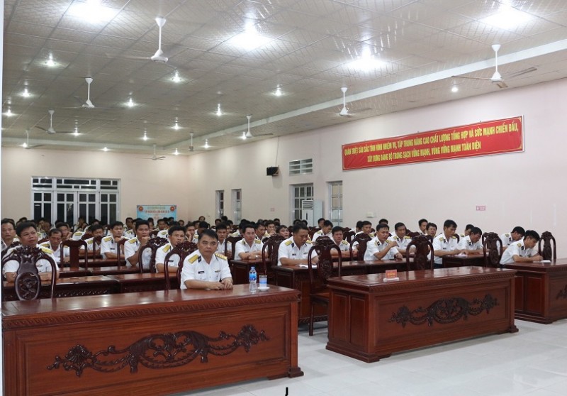 Tại hội nghị do Thường vụ Đảng ủy Vùng tổ chức, Đại tá Ngô Văn Thuân, Bí thư Đảng ủy, Chính ủy Vùng trực tiếp truyền đạt nội dung cho cán bộ chủ trì cấp tàu, đại đội và tương đương trở lên.