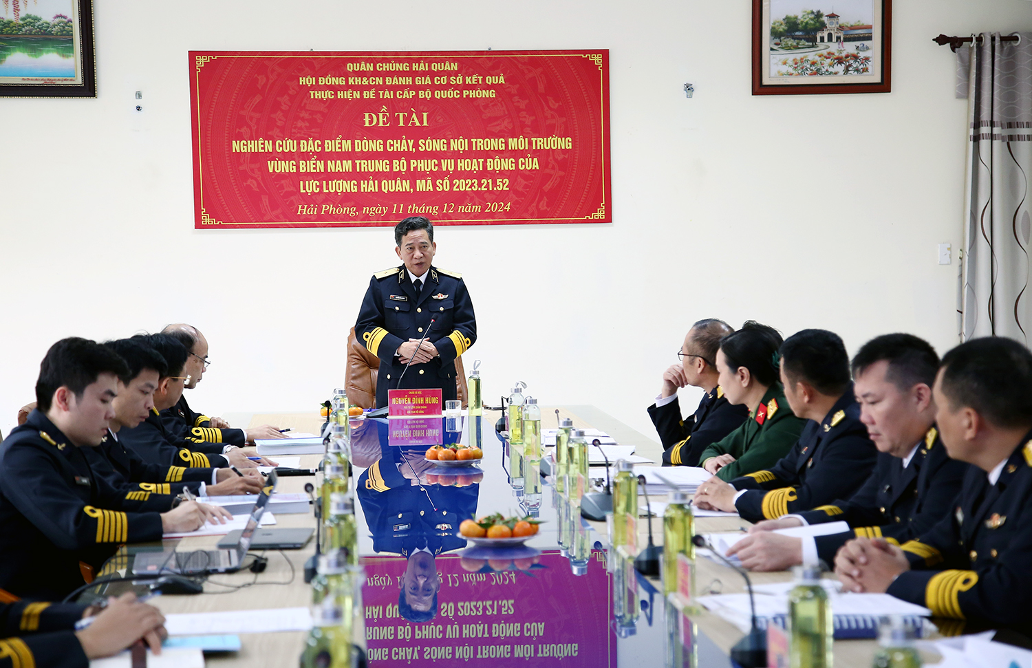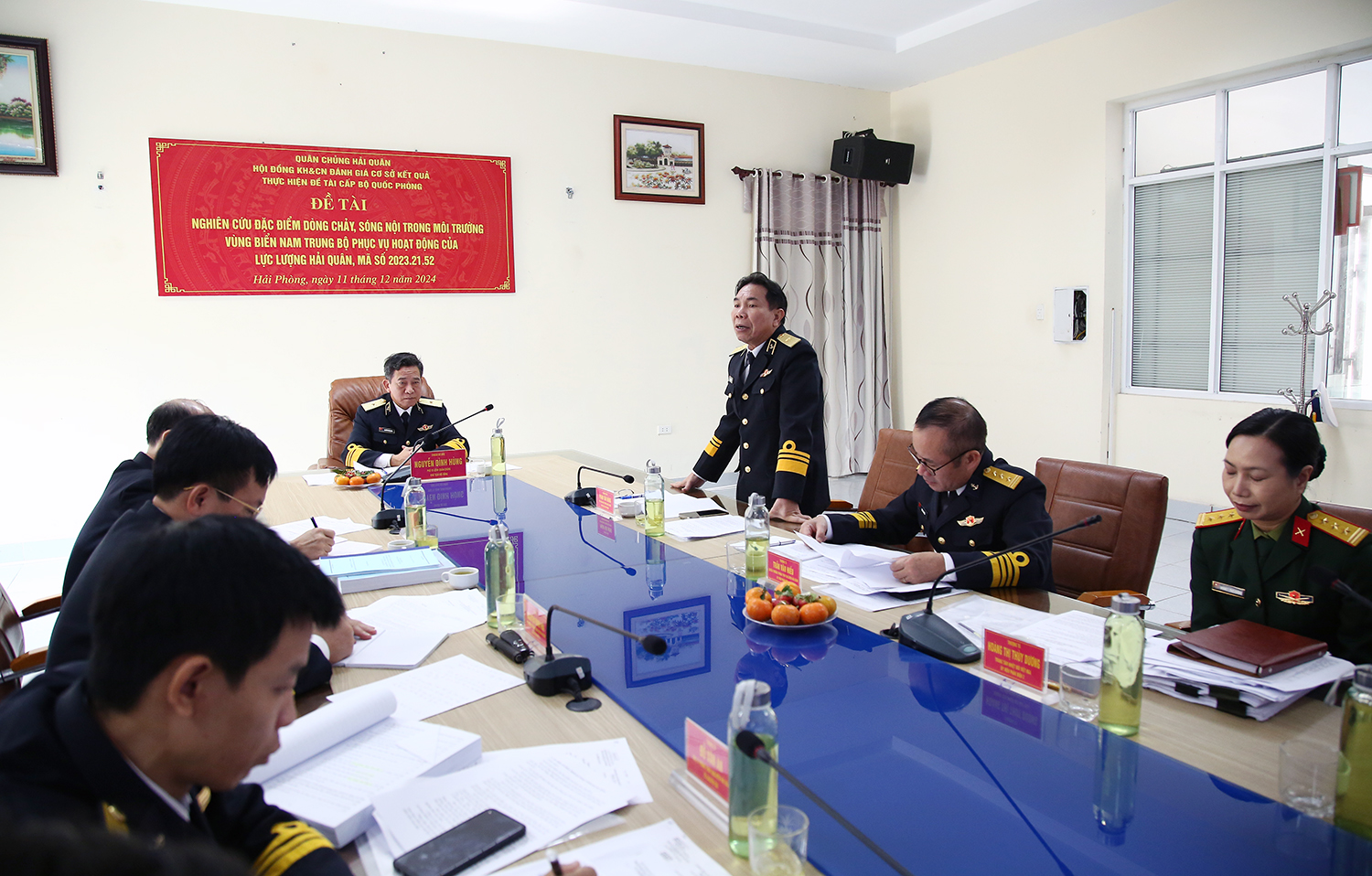 Sáng 11/12, tại Hải Phòng, Hội đồng Khoa học và Công nghệ Quân chủng Hải quân tổ chức đánh giá cơ sở kết quả thực hiện đề tài cấp Bộ Quốc phòng “Nghiên cứu đặc điểm dòng chảy, sóng nội trong môi trường vùng biển Nam Trung Bộ phục vụ hoạt động của lực lượng Hải quân”.