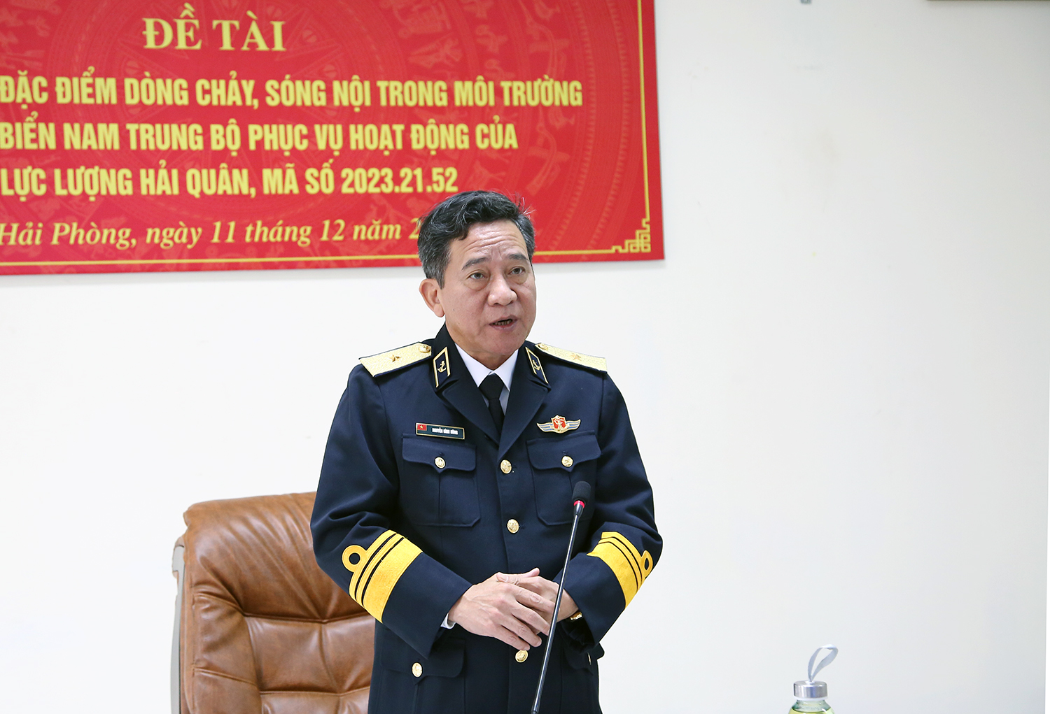 Đề tài có yêu cầu thời gian thực hiện là 24 tháng (bắt đầu từ tháng 2/2023) với 2 mục tiêu là: Xác định được các đặc điểm cơ bản, cơ chế hình thành và diễn biến của trường dòng chảy, trường sóng nội vùng biển Nam Trung Bộ; xác định được ảnh hưởng và giải pháp giảm thiểu tác động của dòng chảy, sóng nội đến hoạt động của lực lượng Hải quân.