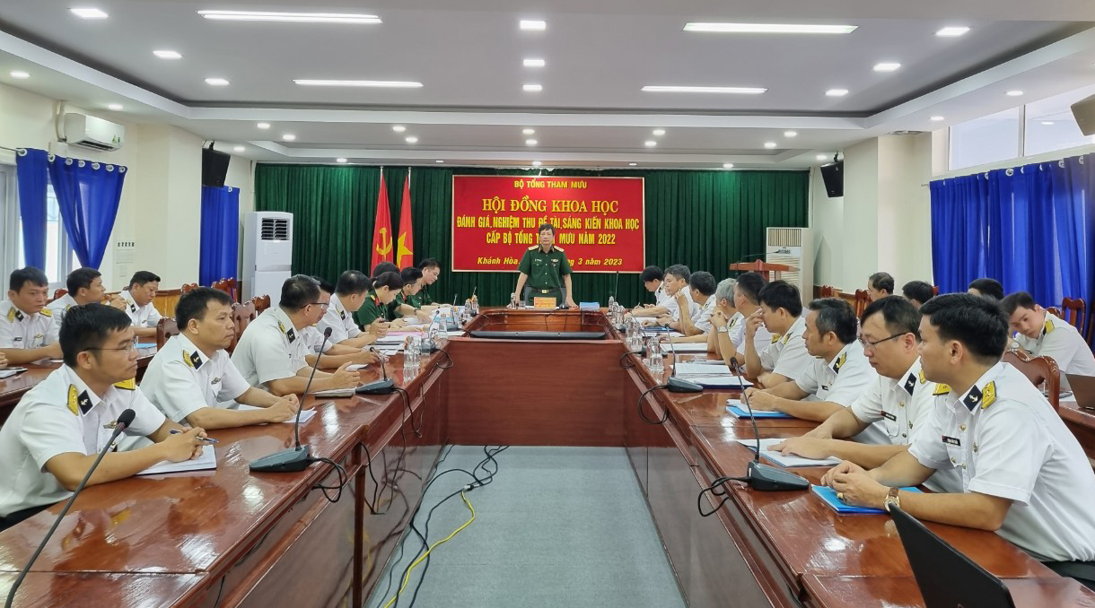 Ngày 23/3, tại TP. Nha Trang, tỉnh Khánh Hòa, Hội đồng Khoa học Bộ Tổng Tham mưu tổ chức nghiệm thu 4 đề tài, 6 sáng kiến và 6 giáo trình, tài liệu dạy học năm 2022 do Học viện Hải quân thực hiện.