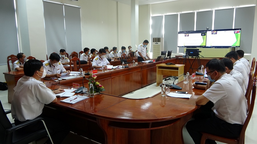 Buổi đánh giá, nghiệm thu đề tài, sáng kiến khoa học được tổ chức trực tuyến đầu cầu Hà Nội và điểm cầu Học viện Hải quân. Thiếu tướng, TS Trần Ngọc Thanh, Phó Cục trưởng Cục Nhà trường, Bộ Tổng Tham mưu làm Chủ tịch Hội đồng. Tham dự có đại diện các phòng, khoa có đề tài khoa học.