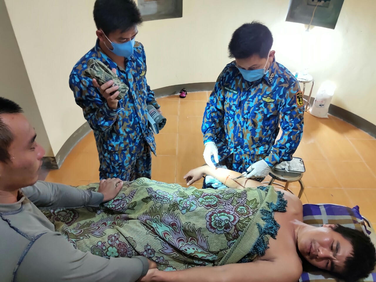 Kíp quân y của đảo do bác sĩ Nguyễn Viết Toàn chỉ huy đã tiến hành sơ cứu, trợ tim, trợ sức, giảm đau, kháng viêm; truyền dịch, gây tê và lấy dị vật ra khỏi cẳng tay cho bệnh nhân.