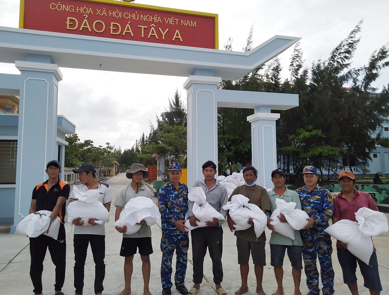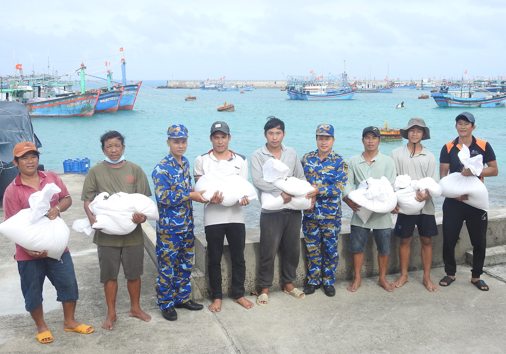 Ngay sau khi cập âu tàu, chỉ huy đảo đã chỉ đạo đơn vị cấp 675 kg gạo và 2.700 lít nước ngọt cho bà con ngư dân (mỗi tàu 15kg gạo, 60 lít nước ngọt). Cán bộ, chiến sĩ trên đảo còn tổ chức thăm hỏi, động viên, tuyên truyền bà con khai thác hải sản bền vững trên biển.