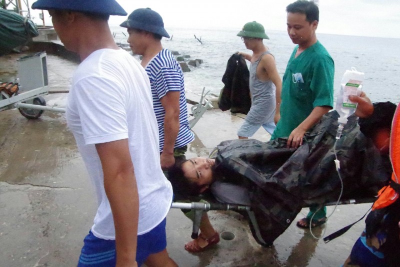 Quân y đảo Phan Vinh đã thăm khám, cho bệnh nhân thở ô xy, truyền dịch, chống phù tủy, kháng sinh dự phòng và tiếp tục theo dõi sức khỏe bệnh nhân.