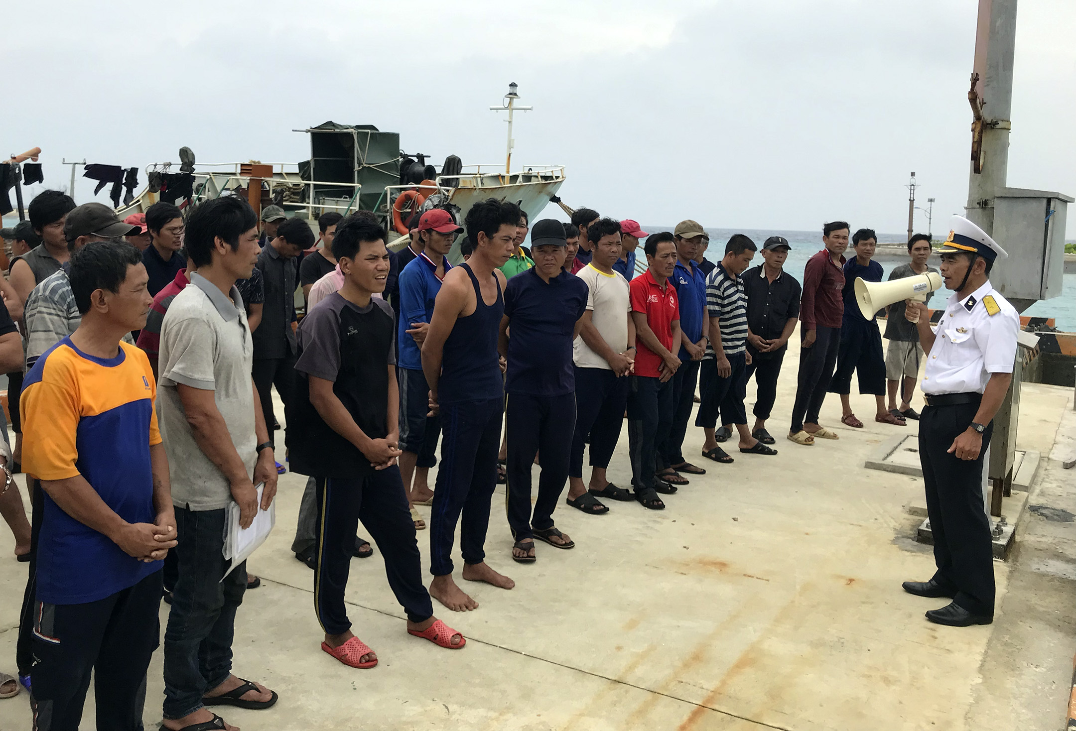 Chỉ huy đảo Sinh Tồn phổ biến quy định sinh hoạt trên đảo cho các ngư dân