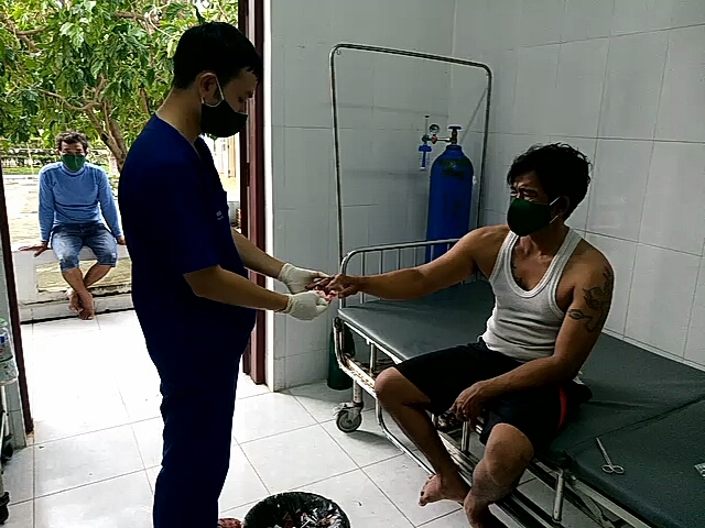 Quân y của đảo đã thăm khám, kịp thời xử lý vết thương cho bệnh nhân: Cắt lọc, tạo hình mỏm cụt ngón tay, kết xương ngón bằng đinh và khâu da thưa 1 lớp đón vết mổ.