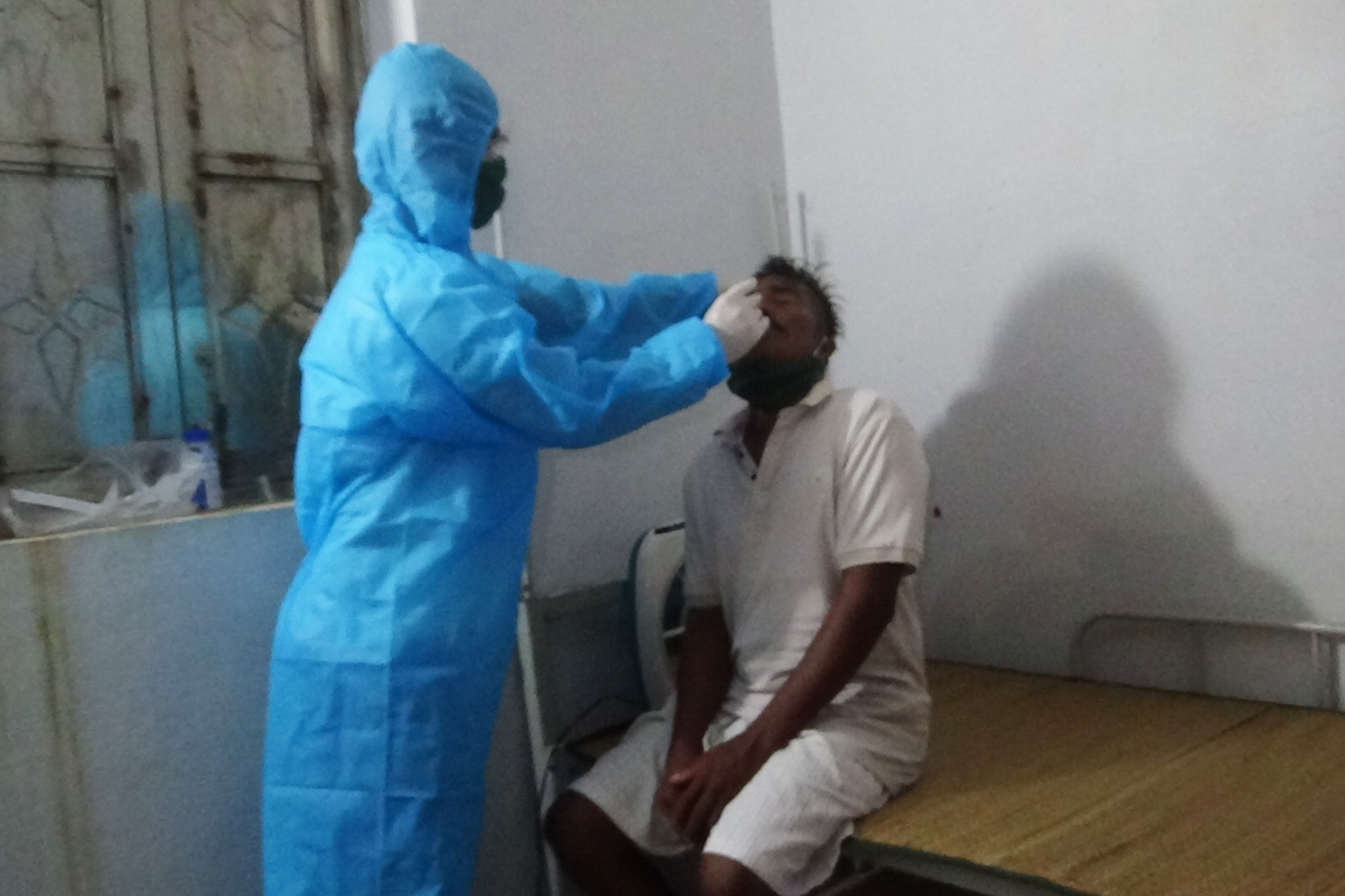 Ngư dân Crisanto Misa được quân y đảo test nhanh kháng nguyên vi rút SARS-CoV-2