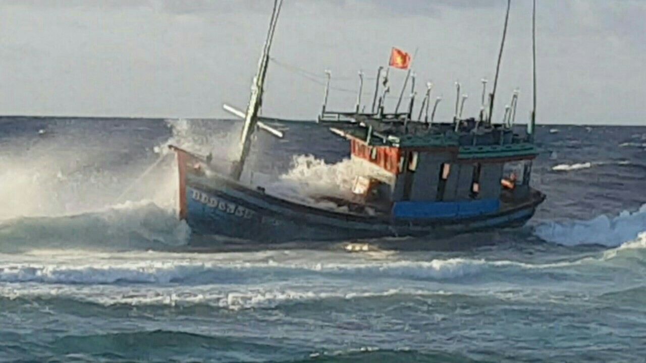 Tàu cá BĐ 96355 TS bị trôi dạt vào bãi cạn đảo Tiên Nữ