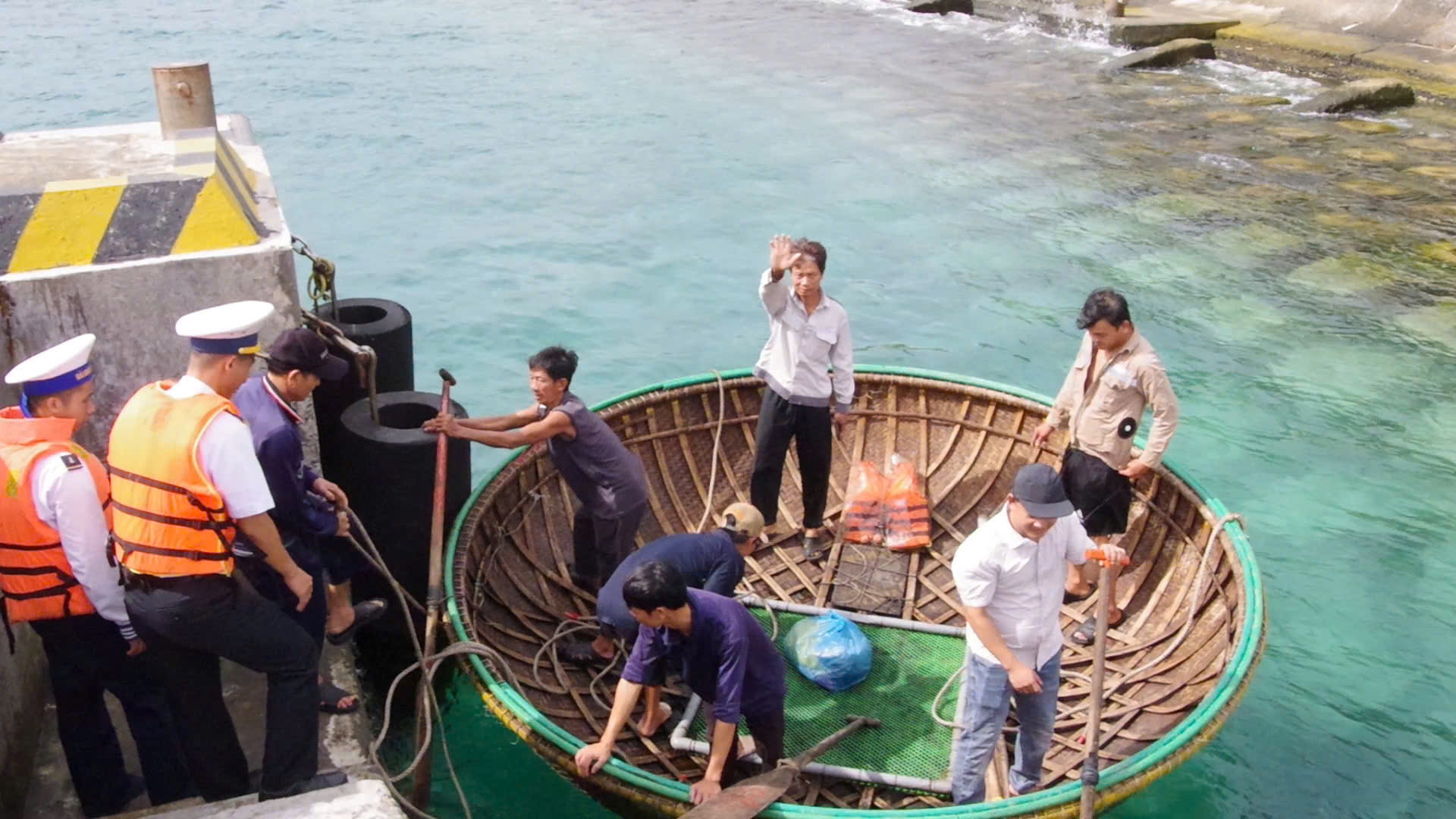 Ngư dân Tiêu Viết Bút rời đảo về tàu cá