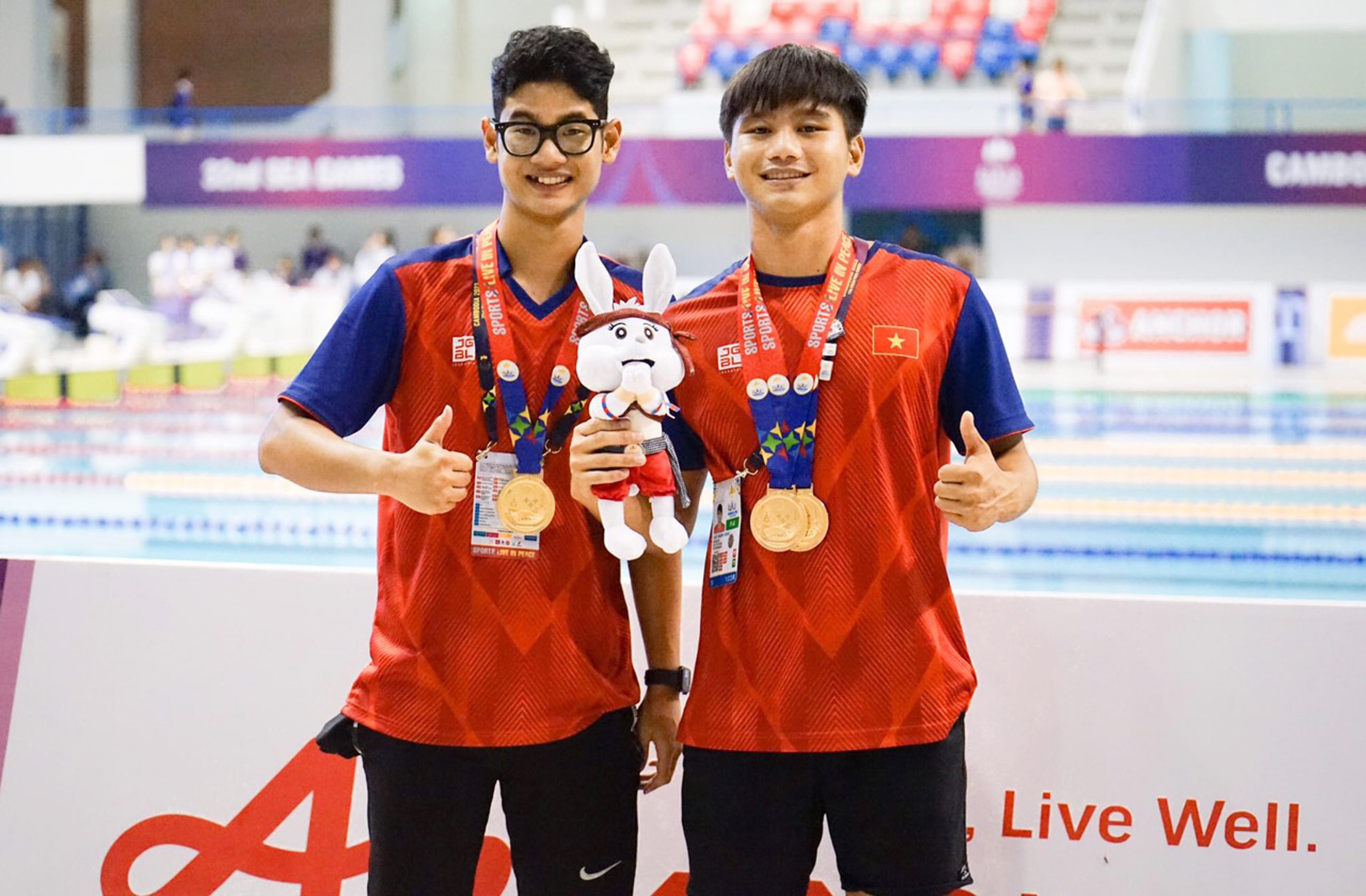 VĐV Kim Anh Kiệt phá kỷ lục ở cự ly 400m vòi hơi chân vịt tại SEA Games 32. Ảnh: CTV