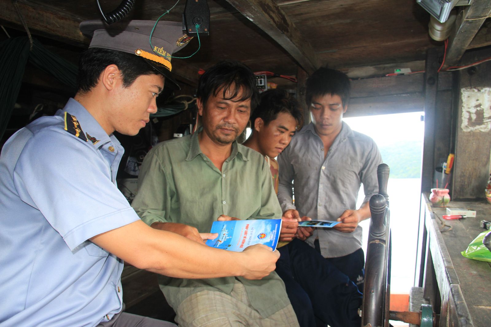 Những ngày thời tiết xấu, biển động, các tàu tập trung về bờ nhiều. Tổ nghiệp vụ của Chi đội đã đến từng tàu vừa phát tờ rơi tuyên truyền về lực lượng Kiểm ngư, sổ tay hỏi đáp pháp luật Kiểm ngư kết hợp kiểm tra các ngư cụ cũng như các trang bị, máy móc và phương tiện bảo đảm an toàn trong quá trình đánh bắt trên biển. Có trường hợp thuyền viên còn không biết chữ, Tổ nghiệp vụ phải giảng giải, phân tích các hoạt động đánh bắt hợp pháp và những hành vi bị cấm trong hoạt động thủy sản.