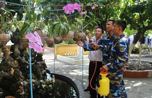 Chiến sĩ đảo Nam Yết chăm sóc các giò lan
