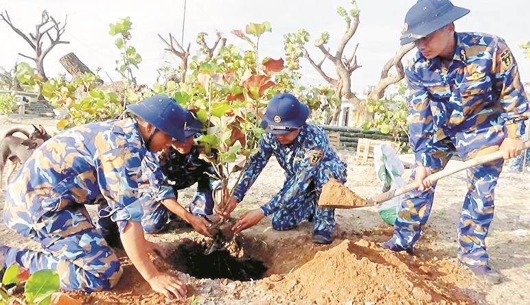 Cán bộ, chiến sĩ đảo Song Tử Tây trồng cây trên đảo