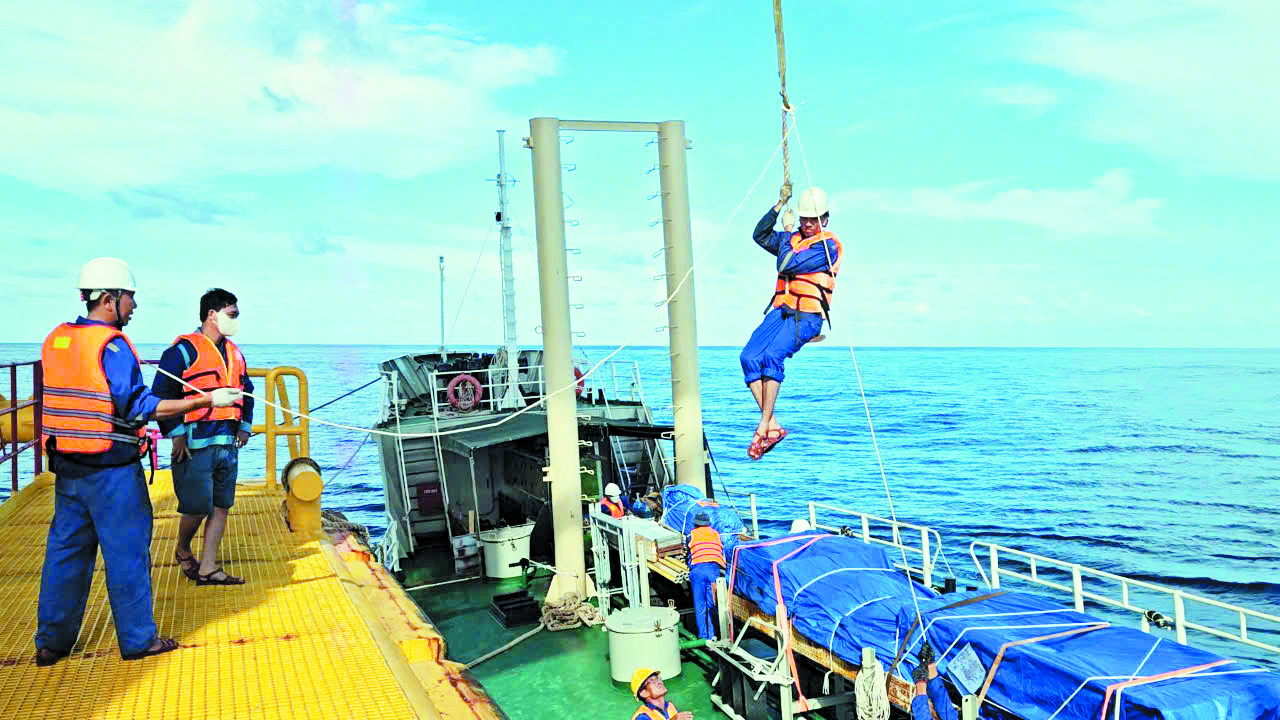Công việc trên cao giữa biển luôn tiềm ẩn nhiều nguy cơ mất an toàn, nhất là trong điều kiện thời tiết thất thường và sóng lớn. Tuy nhiên, các đội sửa chữa đã triển khai đồng bộ các biện pháp bảo đảm an toàn và tuân thủ nghiêm ngặt các quy chuẩn kỹ thuật khi thi công công trình trên biển. “Ngay từ khi còn ở đất liền, cán bộ, nhân viên kỹ thuật đã được huấn luyện bài bản các kỹ năng như thắt dây an toàn, xử trí tình huống khi rơi xuống nước, cùng các kỹ thuật về giàn giáo, đu dây và làm việc trên cao với nhiều dụng cụ chuyên dụng. Ngoài ra, những người tham gia sửa chữa và bảo dưỡng nhà giàn còn phải có sức khỏe dẻo dai, khả năng chịu đựng sóng gió và thích nghi với điều kiện thời tiết khắc nghiệt, thay đổi thất thường” - Thượng tá Trần Xuân Hòa, Phó Hải đoàn trưởng cho biết.