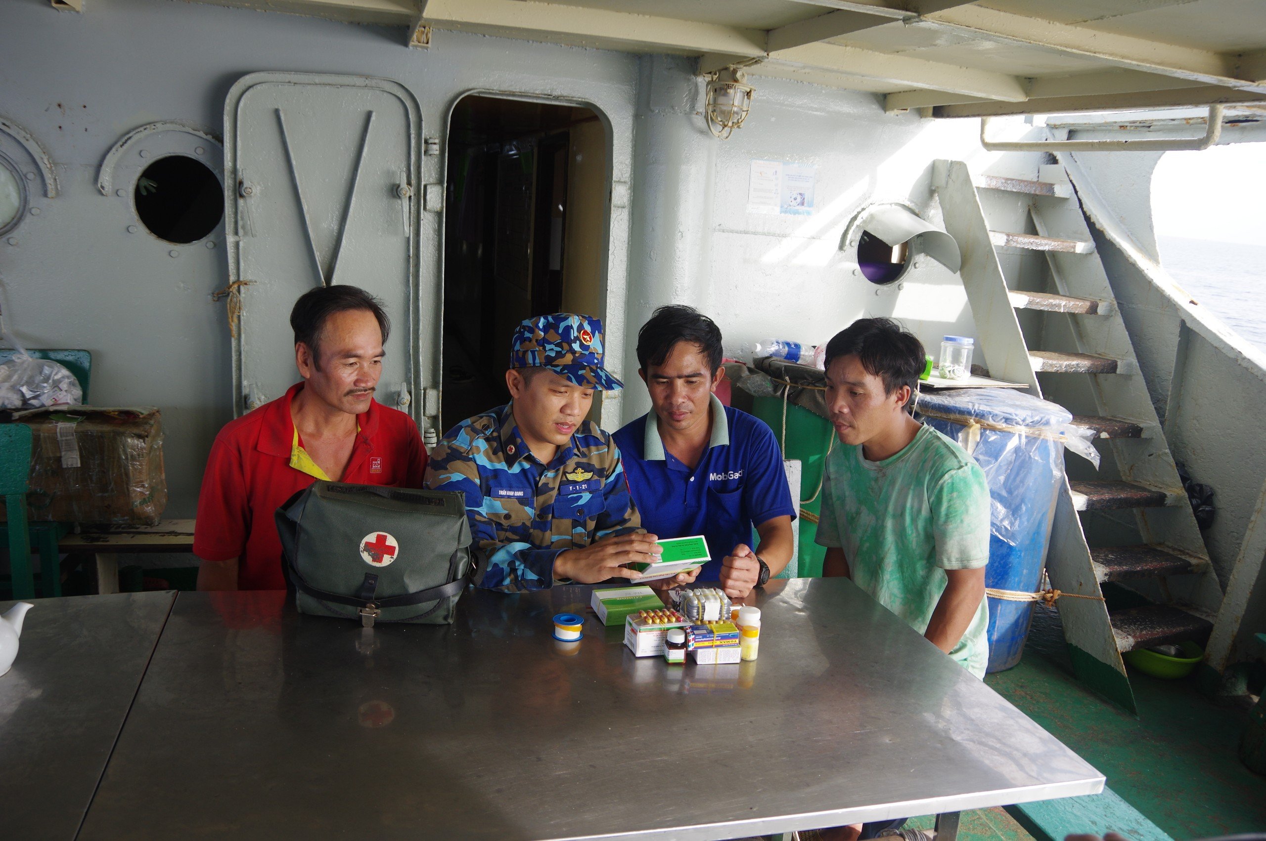 Quân y đơn vị cấp thuốc miễn phí cho ngư dân