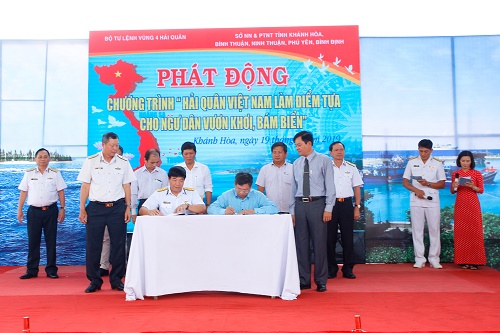 Tại buổi phát động, Đại tá Phan Tuấn Hùng, Tư lệnh Vùng 4 Hải quân cùng đại diện Sở Nông nghiệp và Phát triển nông thôn các tỉnh Khánh Hòa, Bình Định, Phú Yên, Ninh Thuận, Bình Thuận đã ký kết kế hoạch phối hợp, triển khai thực hiện Chương trình “Hải quân Việt Nam làm điểm tựa cho ngư dân vươn khơi, bám biển”.
