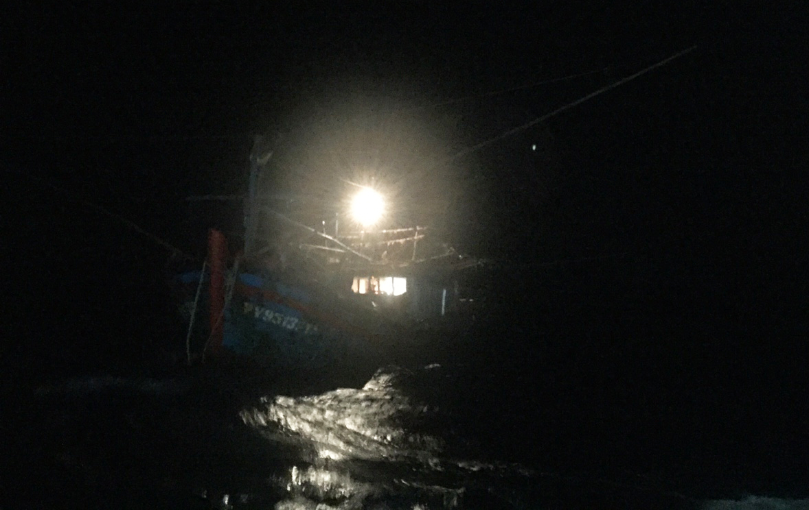 Tàu PY 95139 TS khi đang được khắc phục sự cố. Ảnh: Hoàng Văn Tới