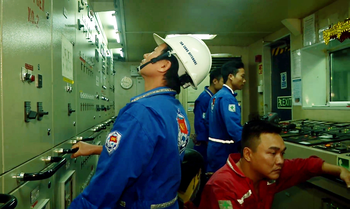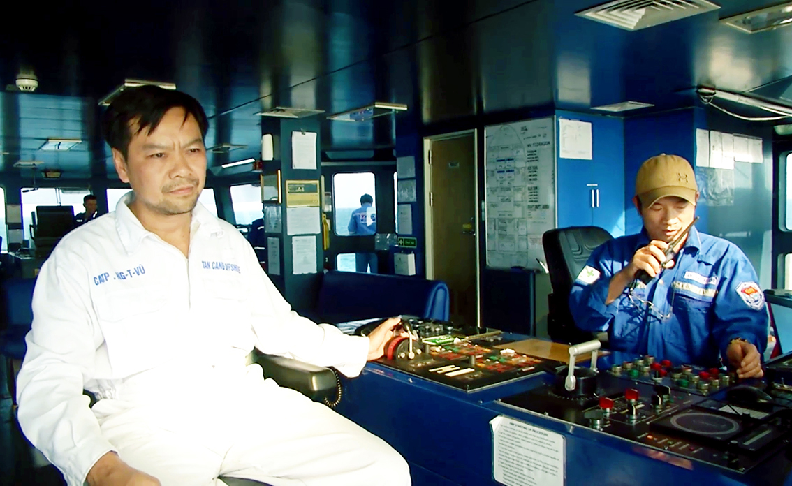 Phối hợp điều hành trên Tàu Tân cảng Dragon. Ảnh: Xuân Thiều