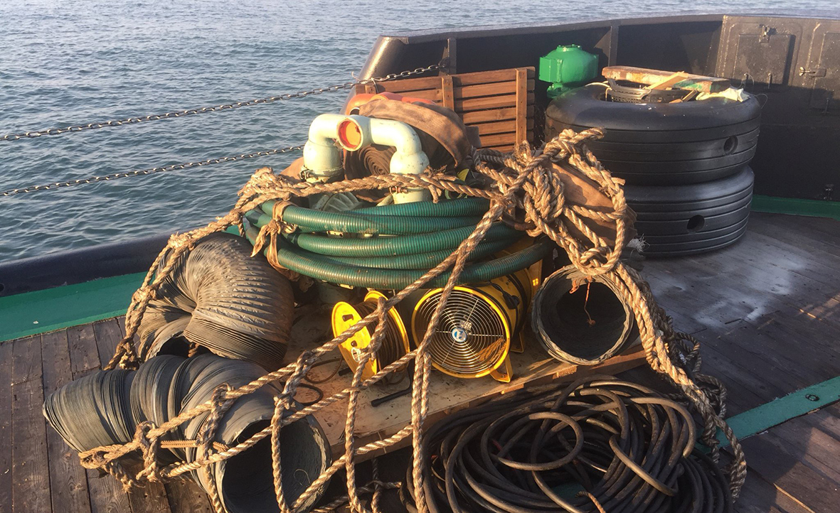 9 giờ sáng nay (3-2), Trung úy Lăng Vũ Tuấn, Phó thuyền trưởng Tàu 991 Hải quân cho biết: Tối 2-2, Tàu 991 đã tiếp cận Tàu APL Lion City là tàu dịch vụ của Singapore tiếp nhận trang bị. Sáng nay, các trang bị này đã được chuyển sang Tàu Vancover để triển khai gồm: Bơm chìm, quạt hút khói nhằm thông gió, chống ngạt khoang.