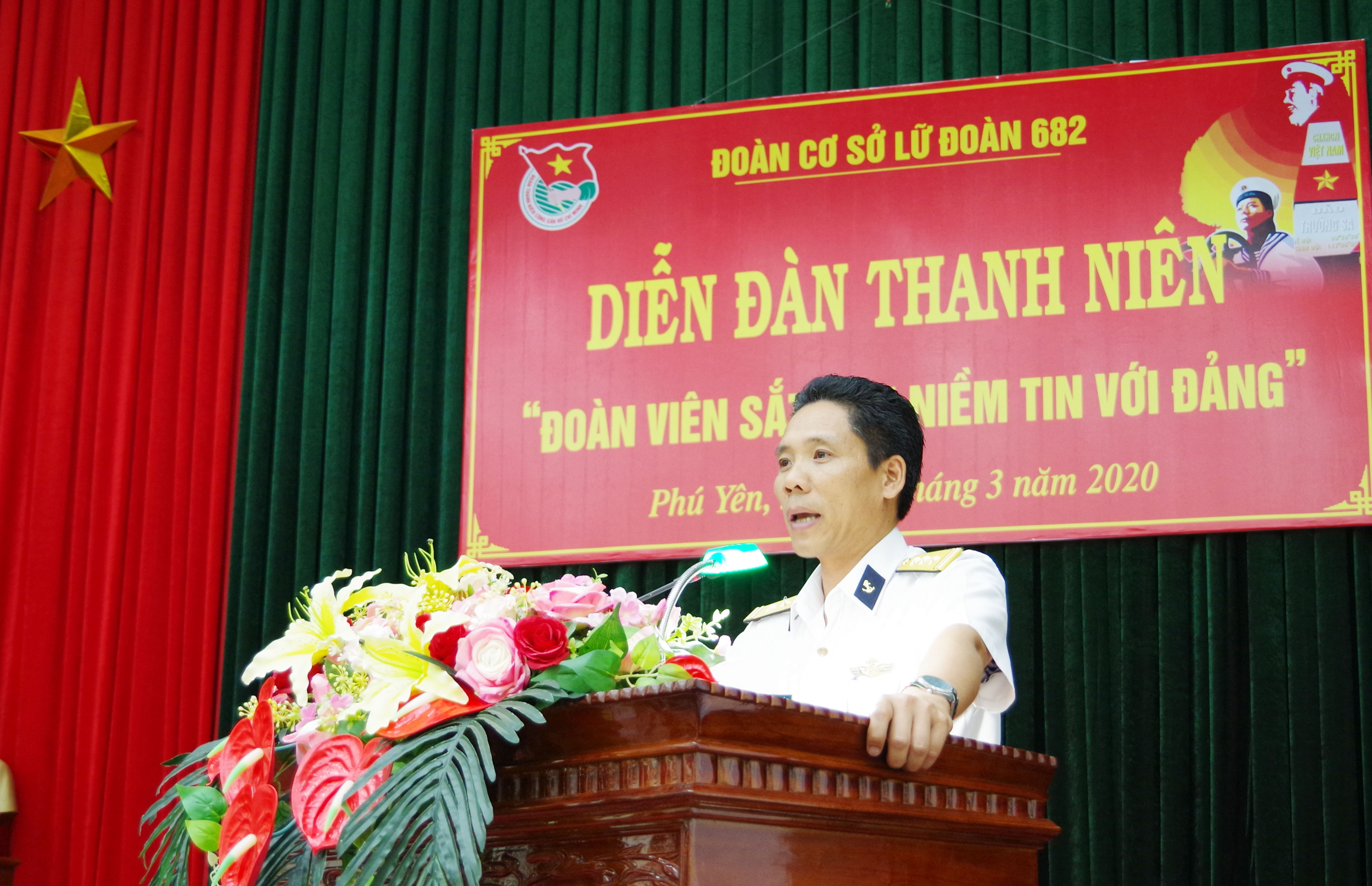 Tối 6-3, tại TP. Tuy Hòa, tỉnh Phú Yên, Đoàn cơ sở Lữ đoàn 682, Vùng 4 Hải quân đã tổ chức diễn đàn với chủ đề “Đoàn viên sắt son niềm tin với Đảng”. Tham dự diễn đàn có hơn 100 cán bộ, đoàn viên, thanh niên trong toàn Lữ đoàn.