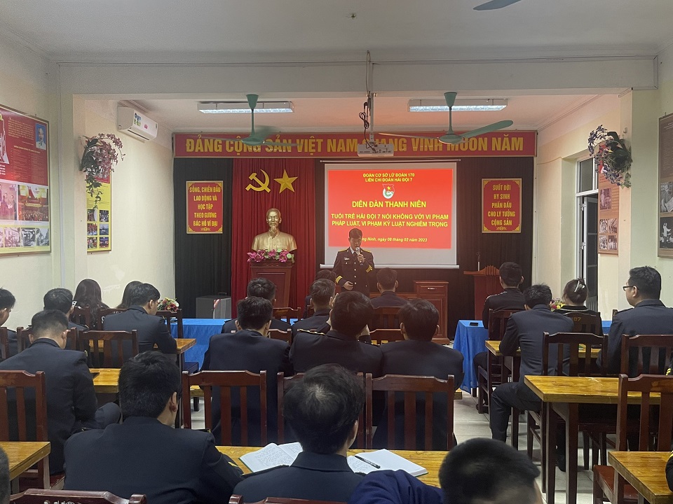 Tối 8/2, tại TP. Hạ Long, tỉnh Quảng Ninh, Liên Chi đoàn Hải đội 7, Đoàn cơ sở Lữ đoàn 170, Vùng 1 Hải quân tổ chức diễn đàn thanh niên với chủ đề “Tuổi trẻ Hải đội 7 nói không với vi phạm pháp luật, kỷ luật nghiêm trọng”.