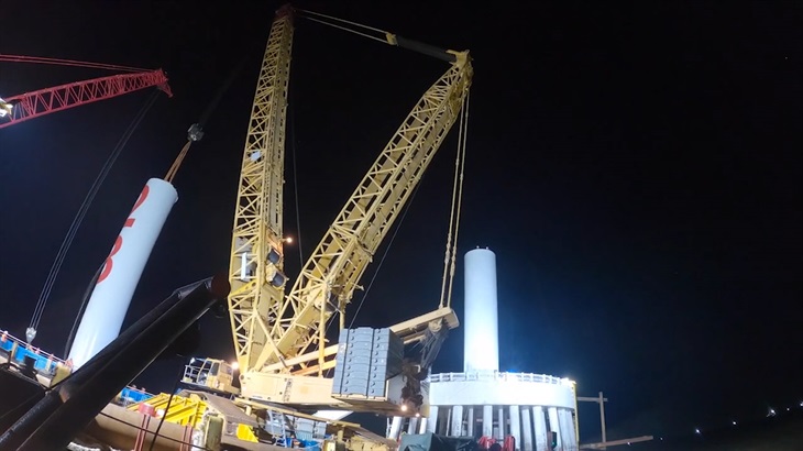 Thiết bị siêu trường, siêu trọng thi công cắm cột điện gió trên biển